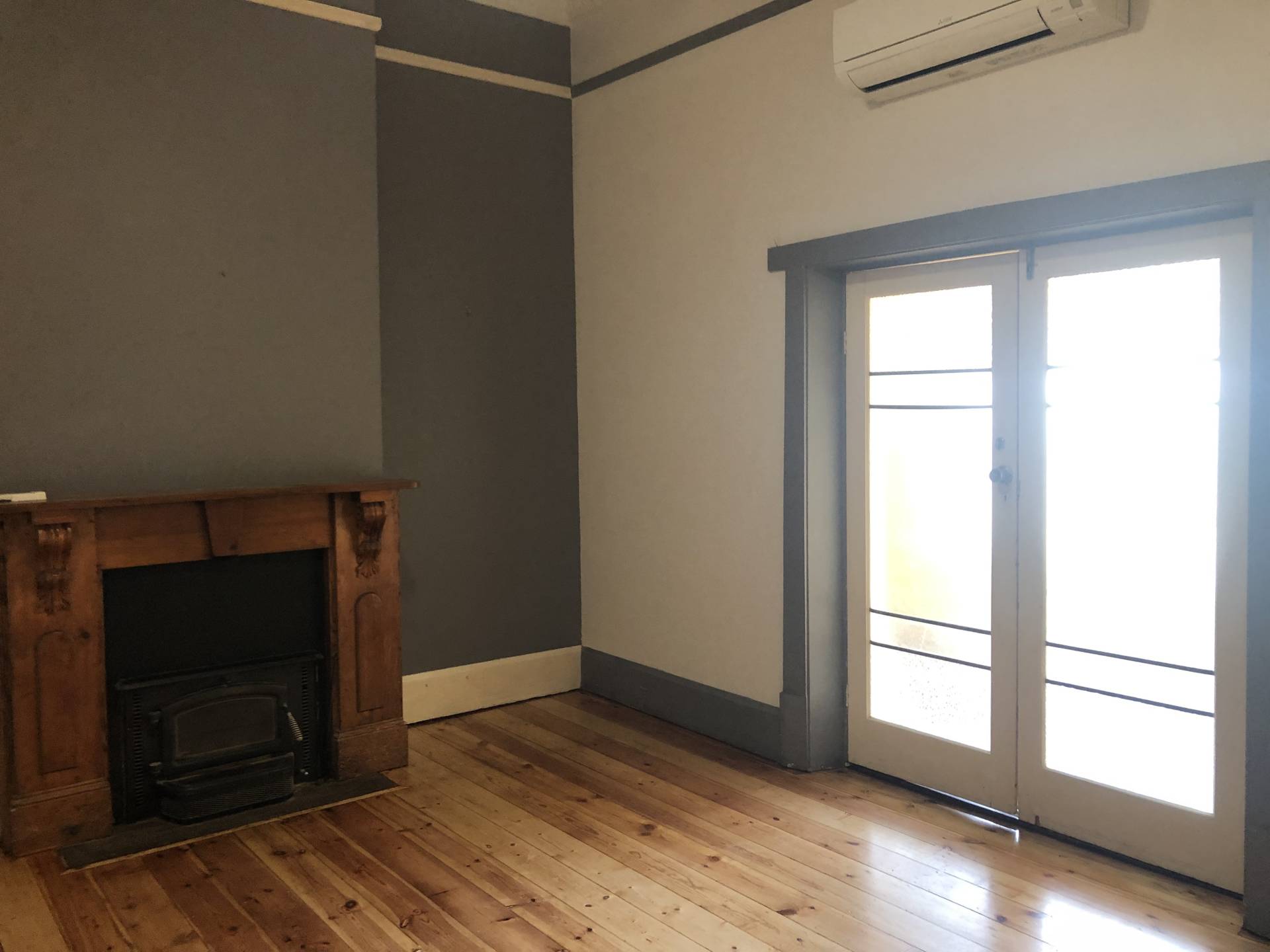 Loungeroom has freshly polished timber flooring, a wood heater, plus a split system air con for heating & cooling.
