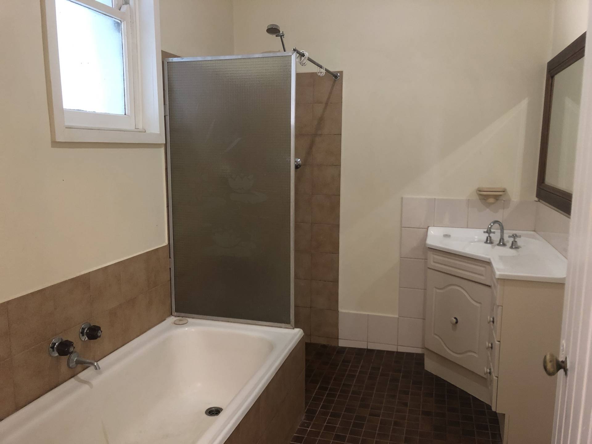 Back porch, bathroom and separated toilet.
