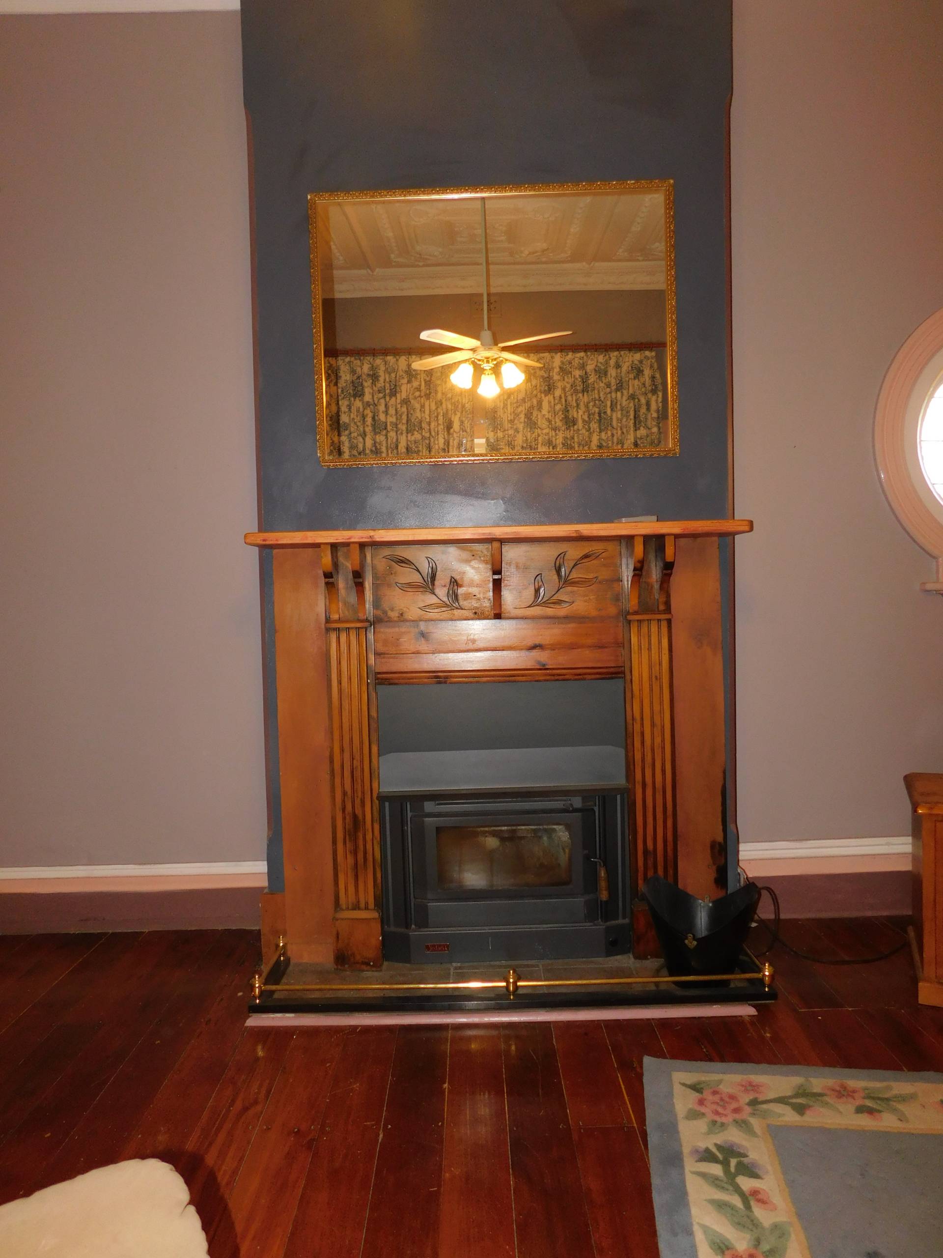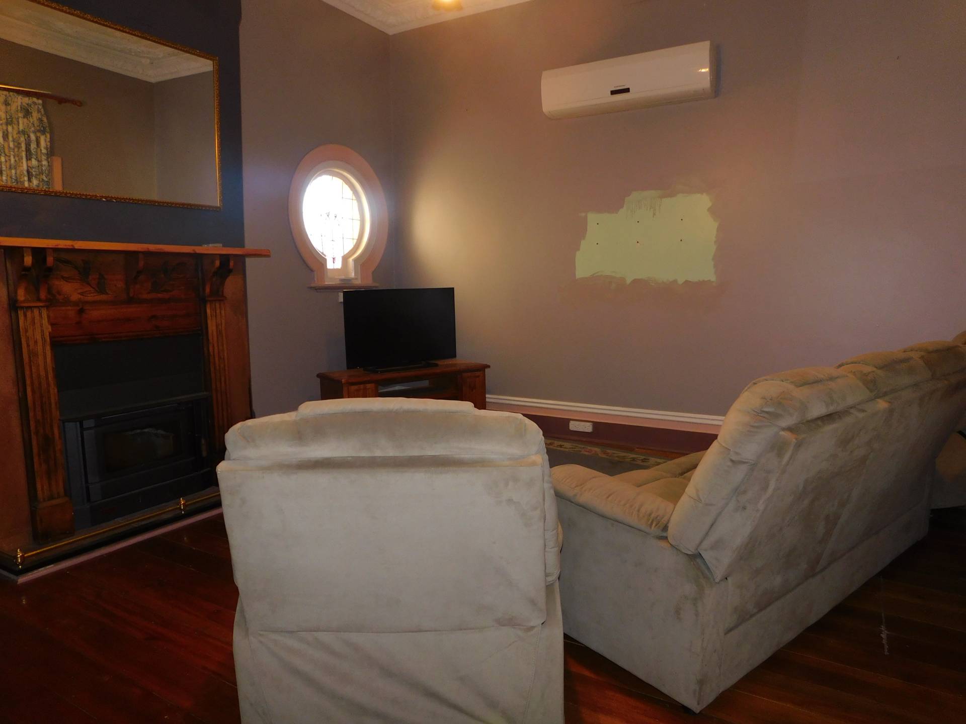 - Generous lounge with split system airconditioner, ornate fireplace with slow combustion wood heater