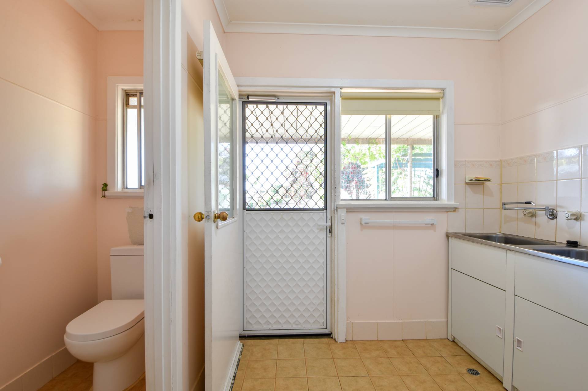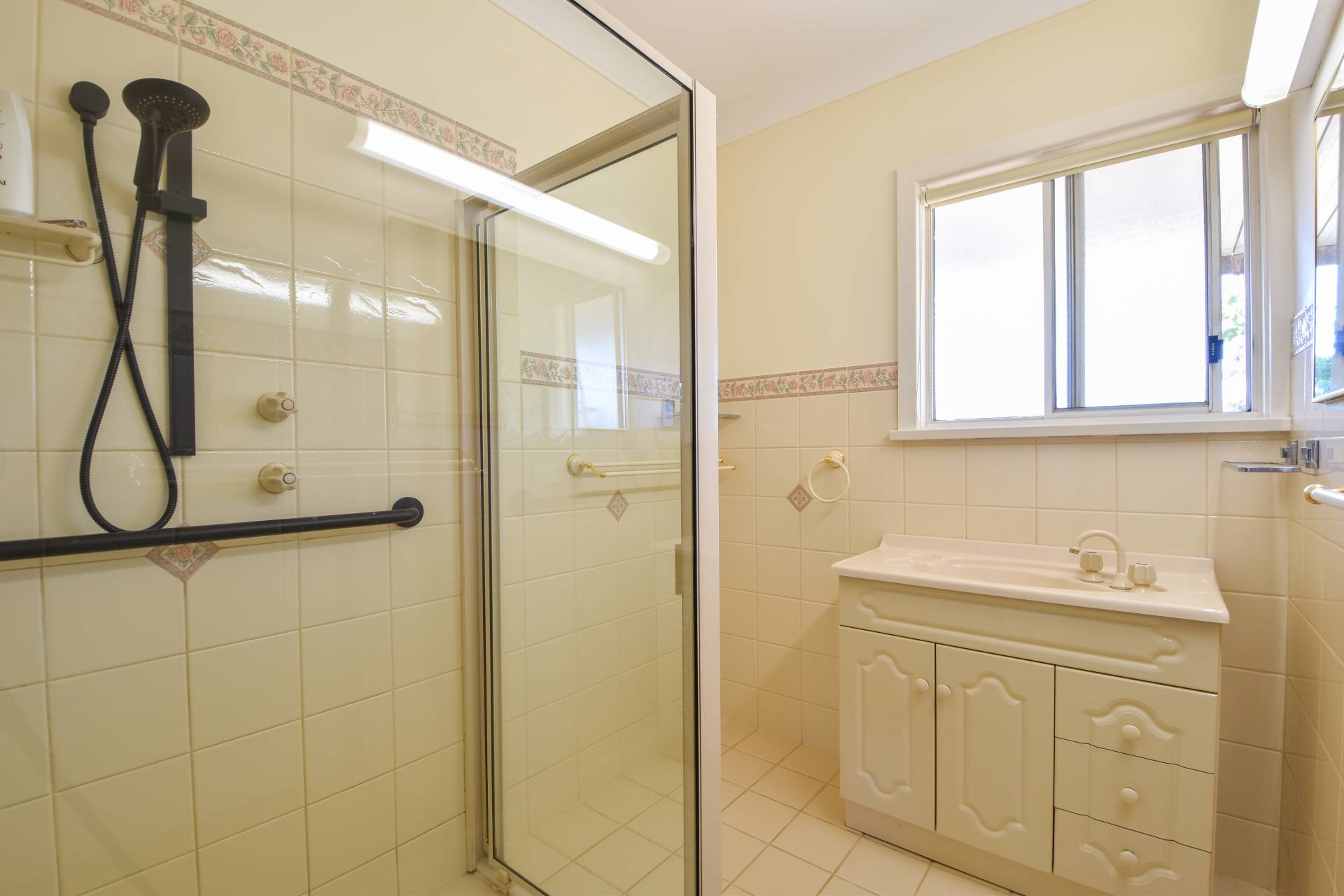 The renovated bathroom features an oversized shower and single vanity, a spacious laundry area includes a double wash trough and a separate toilet for added convenience.