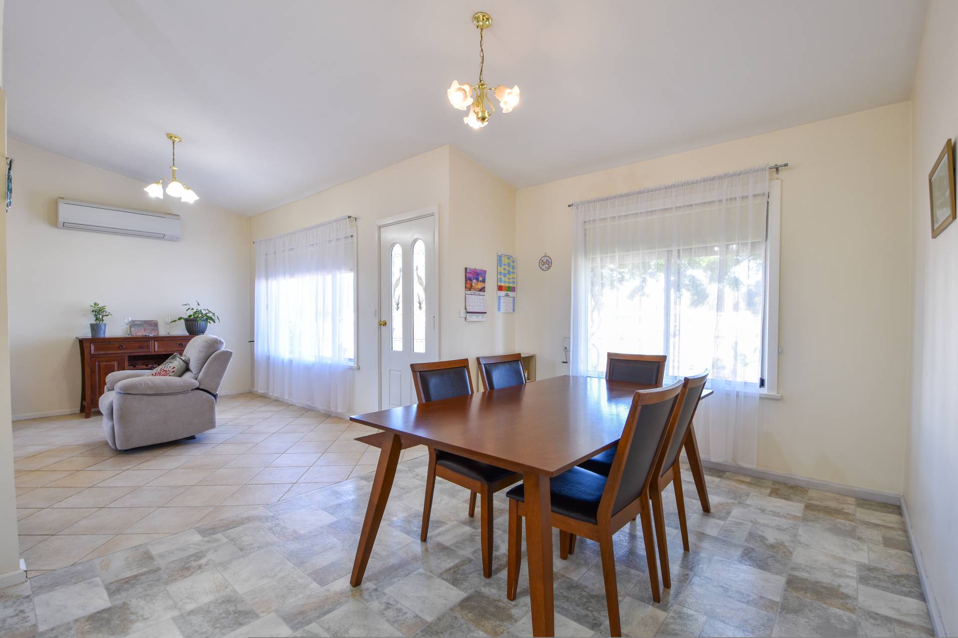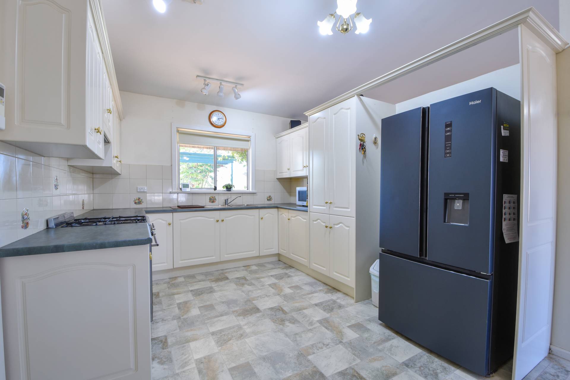 Step outside, and you'll find a tranquil, beautifully landscaped garden graced with a variety of trees, fruit trees, and shrubs. The property also offers a full-length paved rear verandah, a substantial rainwater storage capacity of over 43,000 litres plumbed directly to the house, a large shed with a concrete floor and power supply, along with an additional garden shed. The securely fenced corner lot features three convenient vehicle access gates.