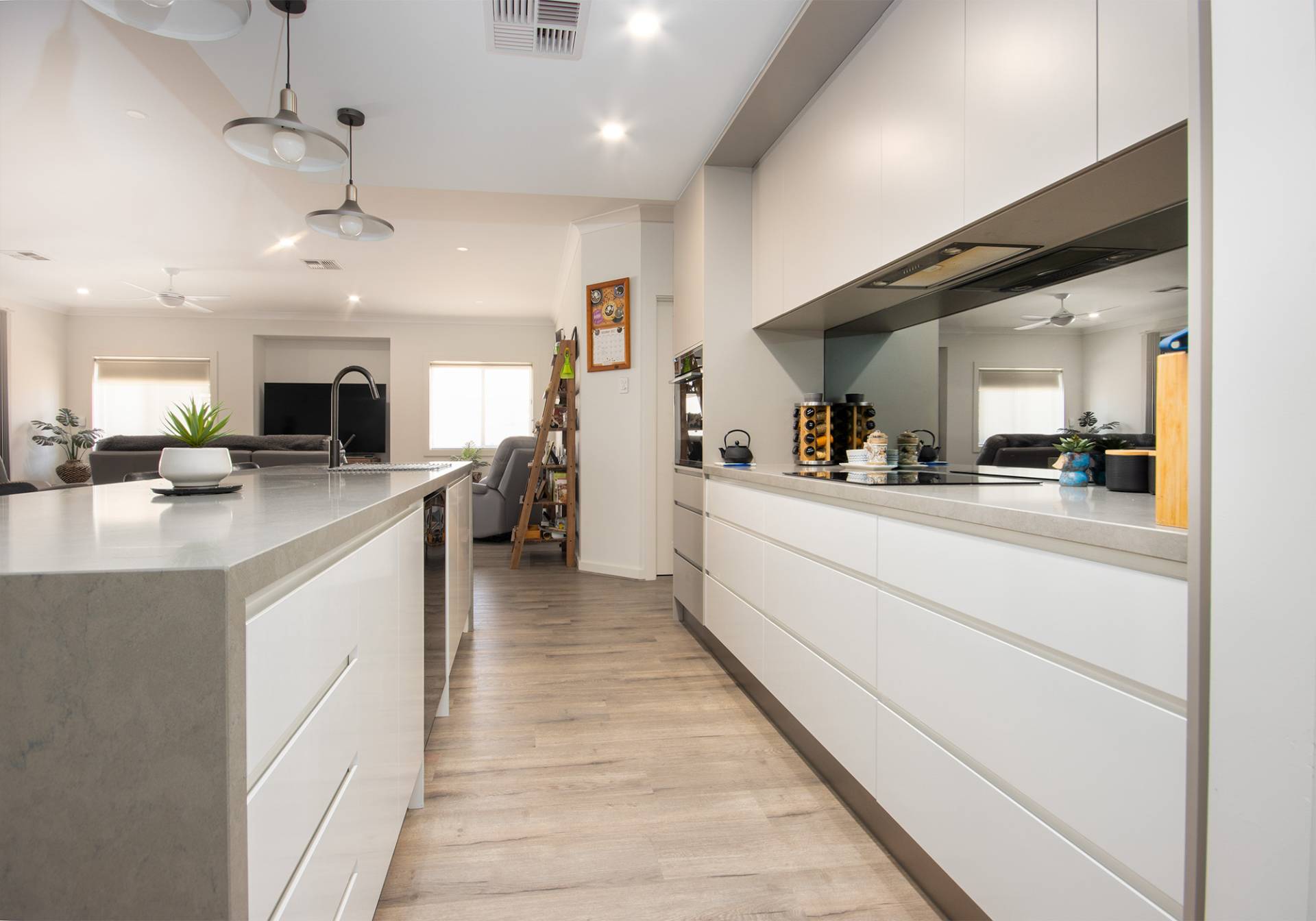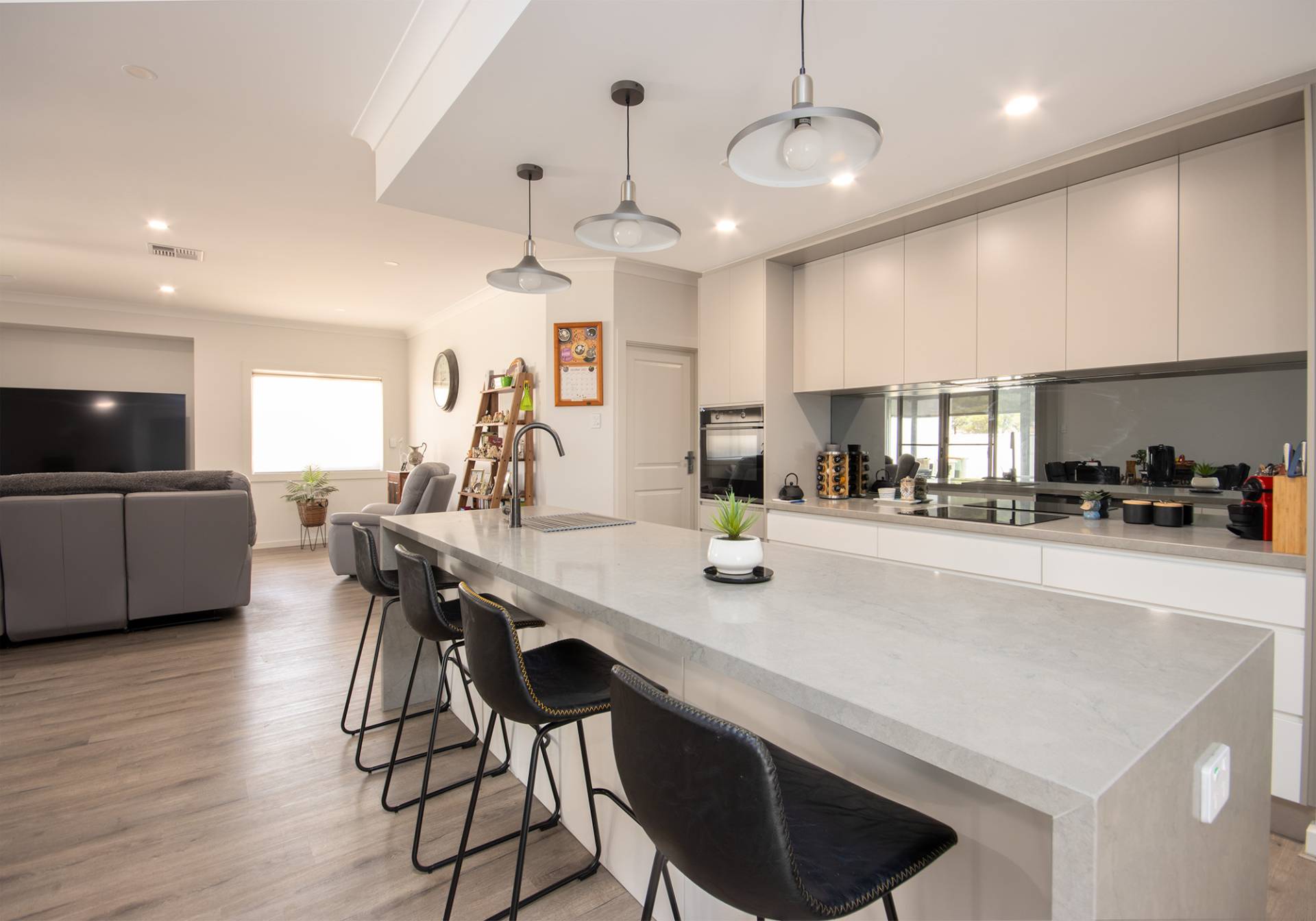 Let's take a closer look... Craft delicious meals in a chef's dream kitchen, equipped with modern appliances & ample counter space. The adjacent butlers pantry ensures your kitchen stays clutter free. The open plan living space is perfect for entertaining & family gatherings, leading seamlessly to the outdoor area. With abundant natural light, this space is a canvas for your creativity.