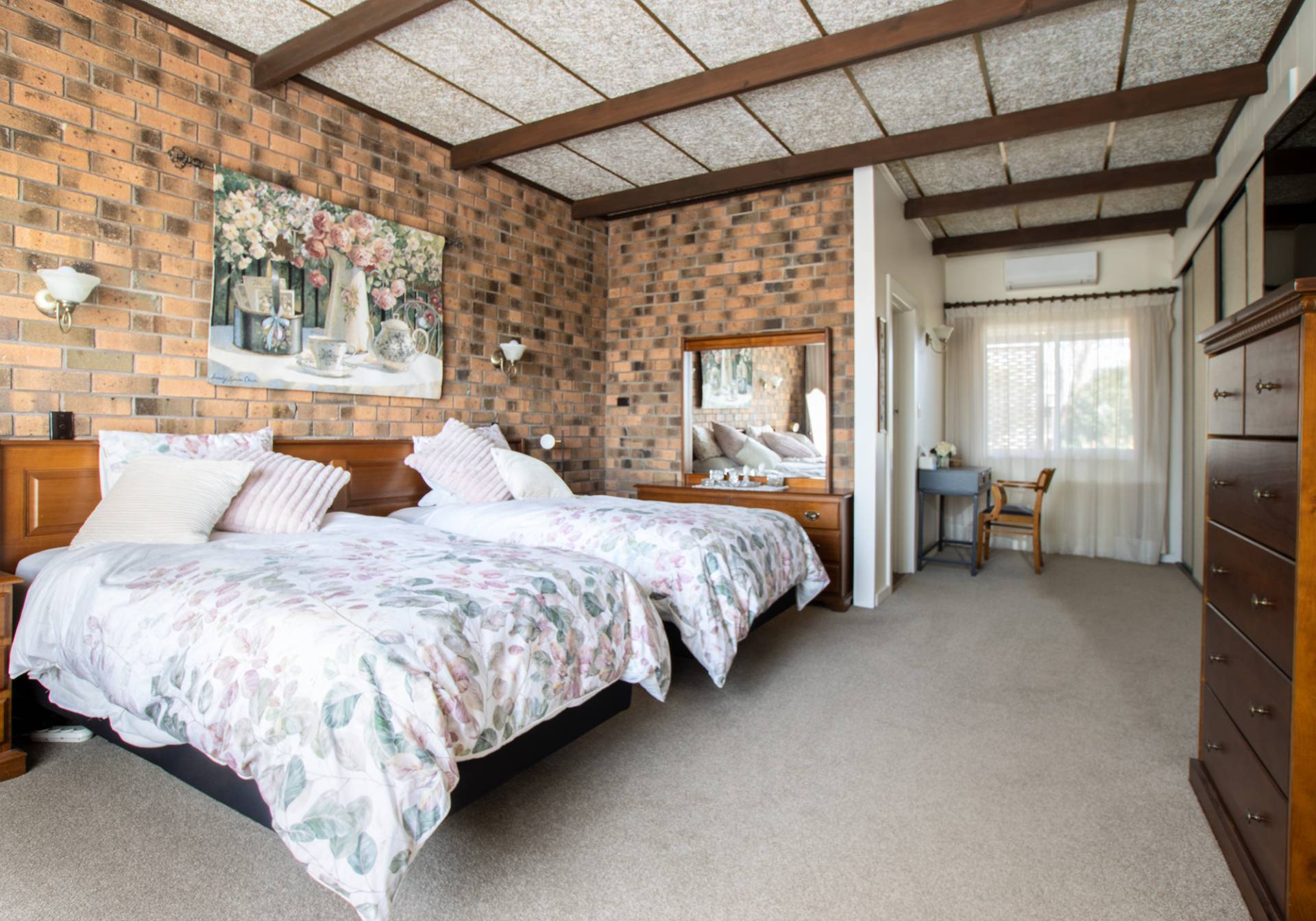 Spacious on the inside and spacious on the outside is this solid brick home offering generous size rooms and is very well presented. This family home has 3 bedrooms; the master with walk-in robe, ensuite and split system air conditioning, bedroom 2 with built-in robe, lounge with gas heater, kitchen, dining and family room with split system air conditioning, bathroom with shower and vanity and separate w/c and laundry. Outside has a large back verandah / entertainment area, double garage, shed with ceiling fan, power and lean-to, rainwater tank, fenced back allotment, shade house, paved and landscaped gardens. The property is situated on a large corner 2176 square metre allotment with side and back road access. Inspections by both open house (times to be advised) and by appointment.