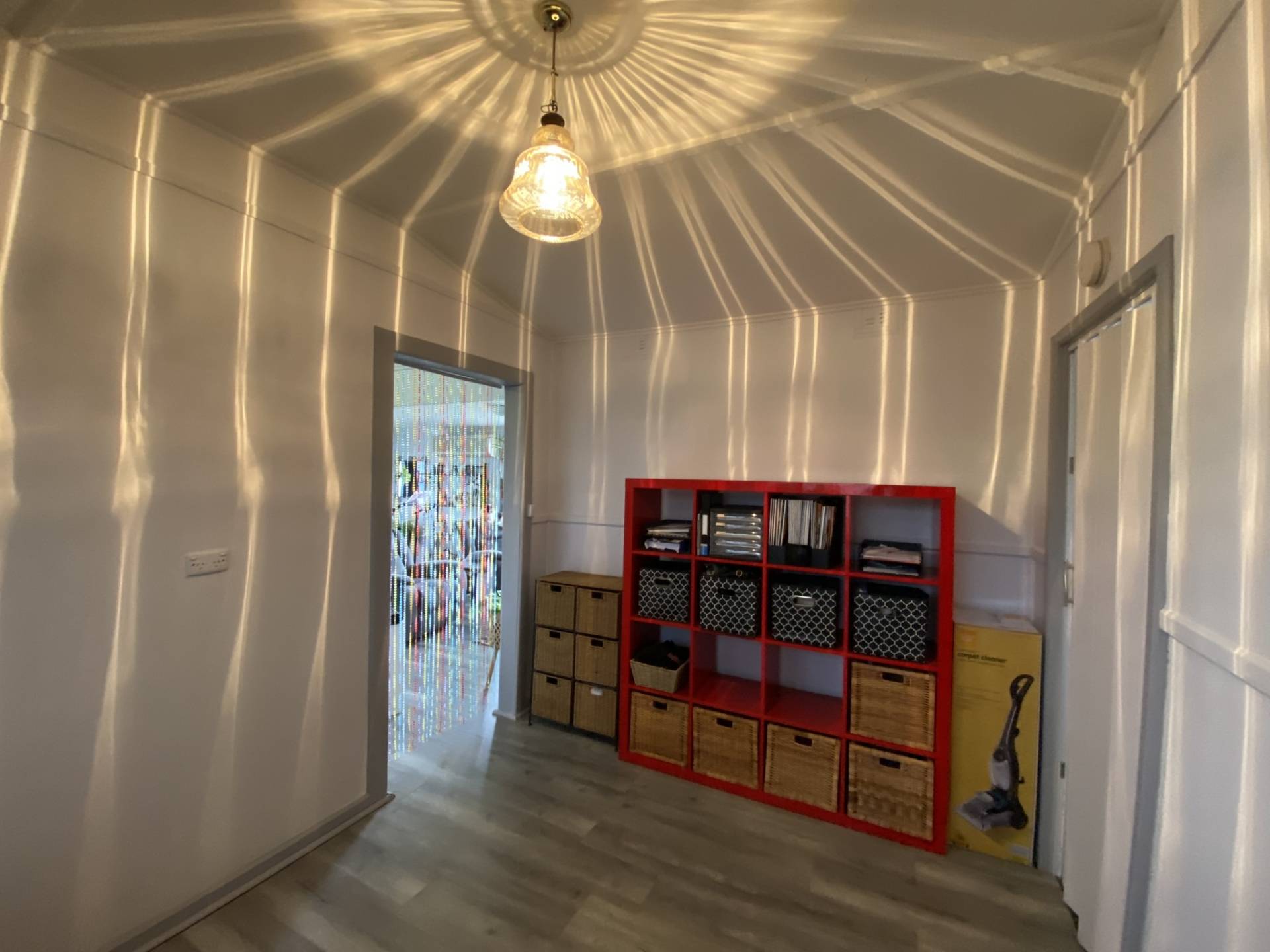 • Spacious Entertaining Area: Enclosed, paved, and designed for comfort, providing access to a workshop and storage.