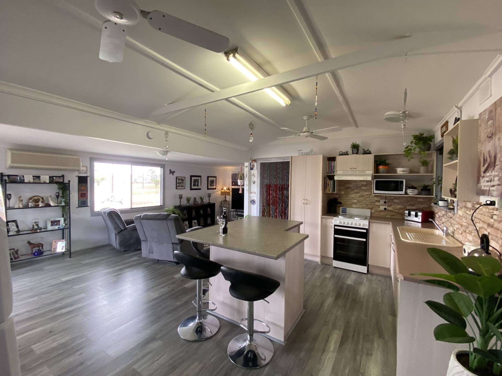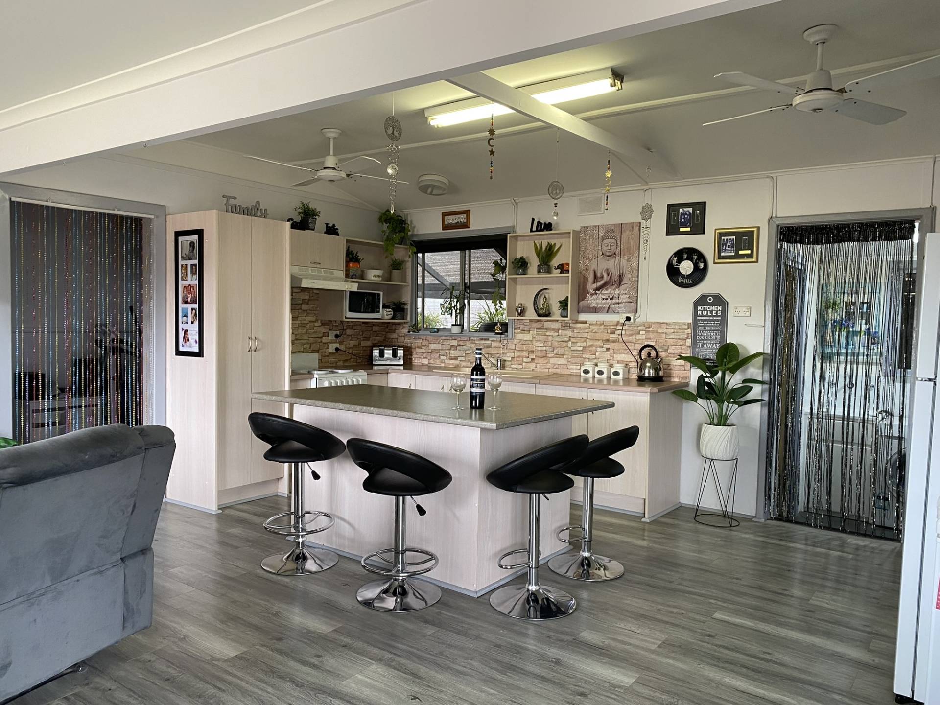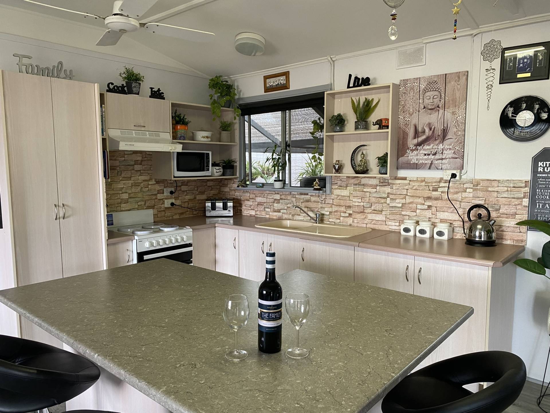 • Upgraded Kitchen: Island bench, ample cupboard space, electric cooking, and range hood, with cooling ceiling fans.