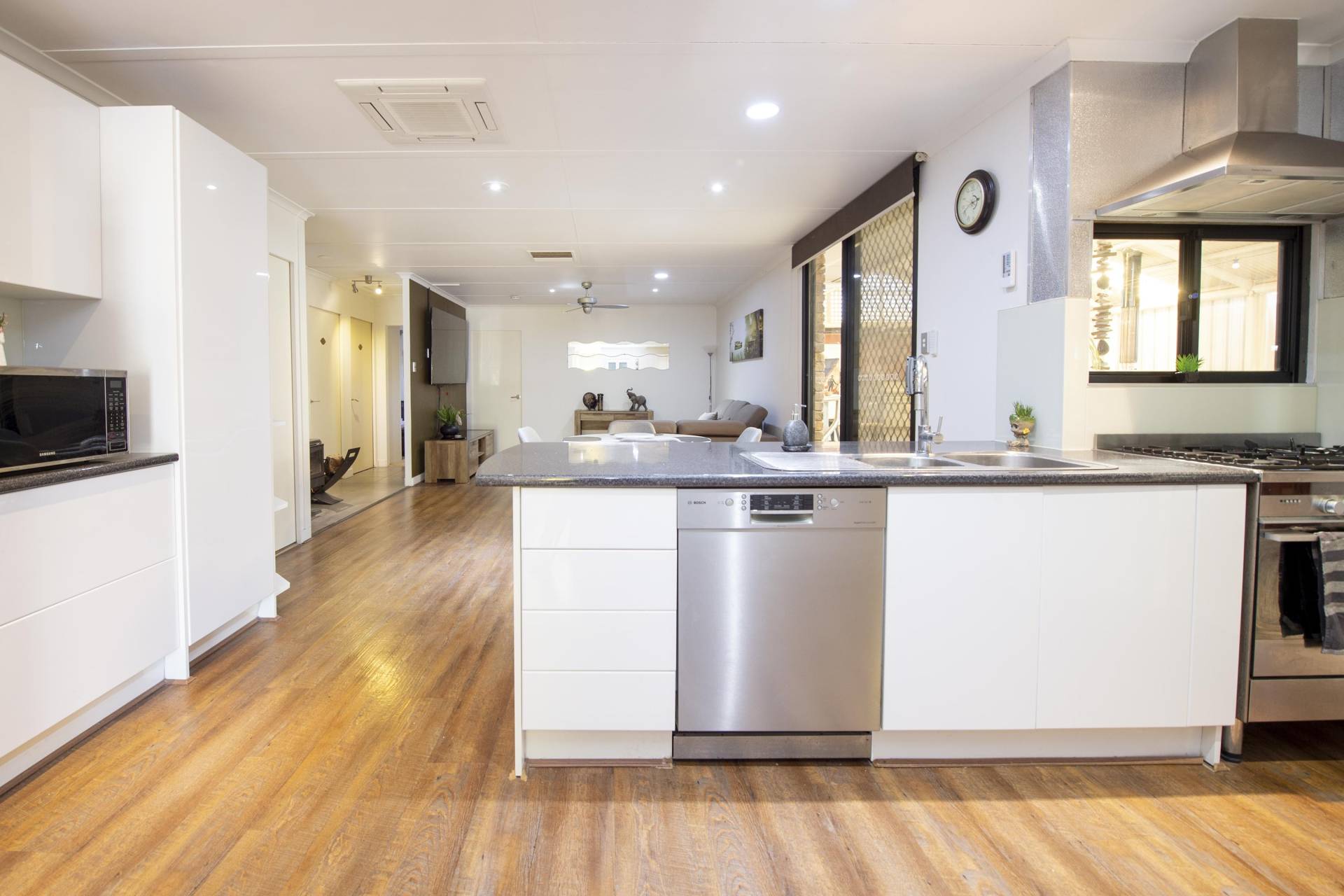 The galley kitchen with walk in pantry, dishwasher & 5 burner free-standing oven, is sure to impress the chef in your family. The insulated ceiling and internal walls, along with cassette style reverse cycle air conditioning & combustion heater will keep you comfortable all year round. While the two living areas and formal dining area offer ample indoor space.