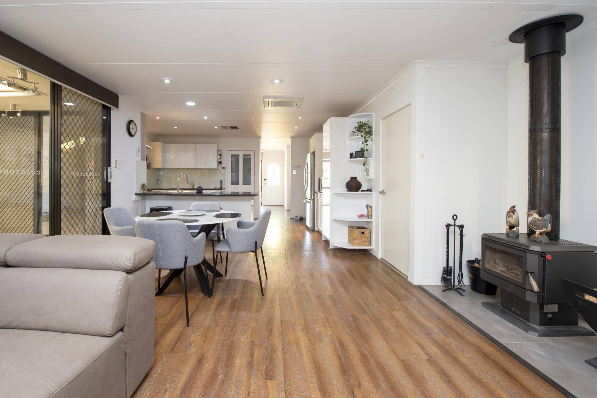 Step outside and be greeted by multiple entertaining areas, perfect for hosting guests or enjoying quality time with your loved ones with pizza oven included. The lined shed, complete with combustion heater & TV flows into the large gabled roofed entertaining area. Zip lock blinds feature here and provide great all-year round comfort for outdoor gatherings. In addition to the roller door secure carport, this property also offers rainwater storage, allowing you to save on your water bills.