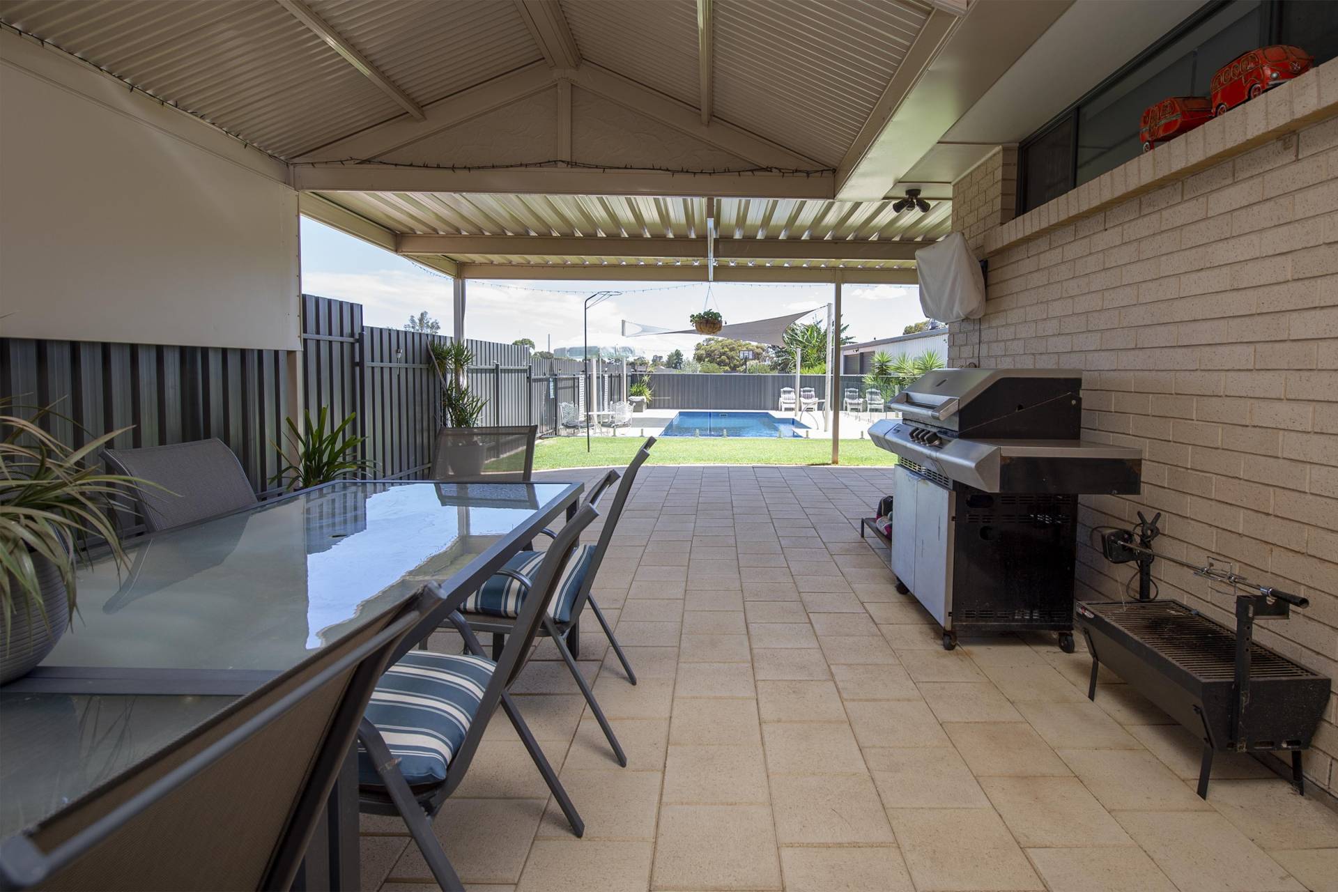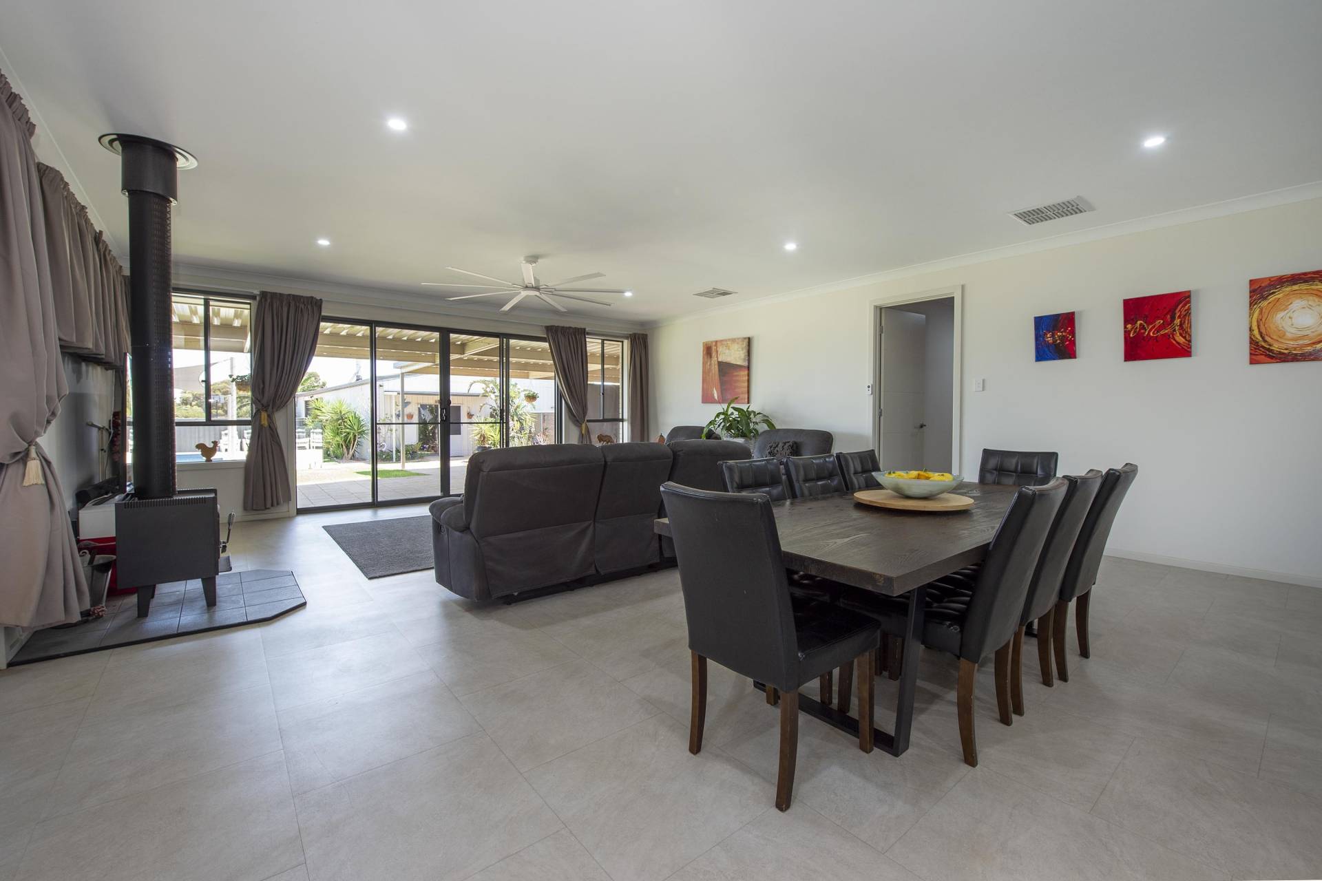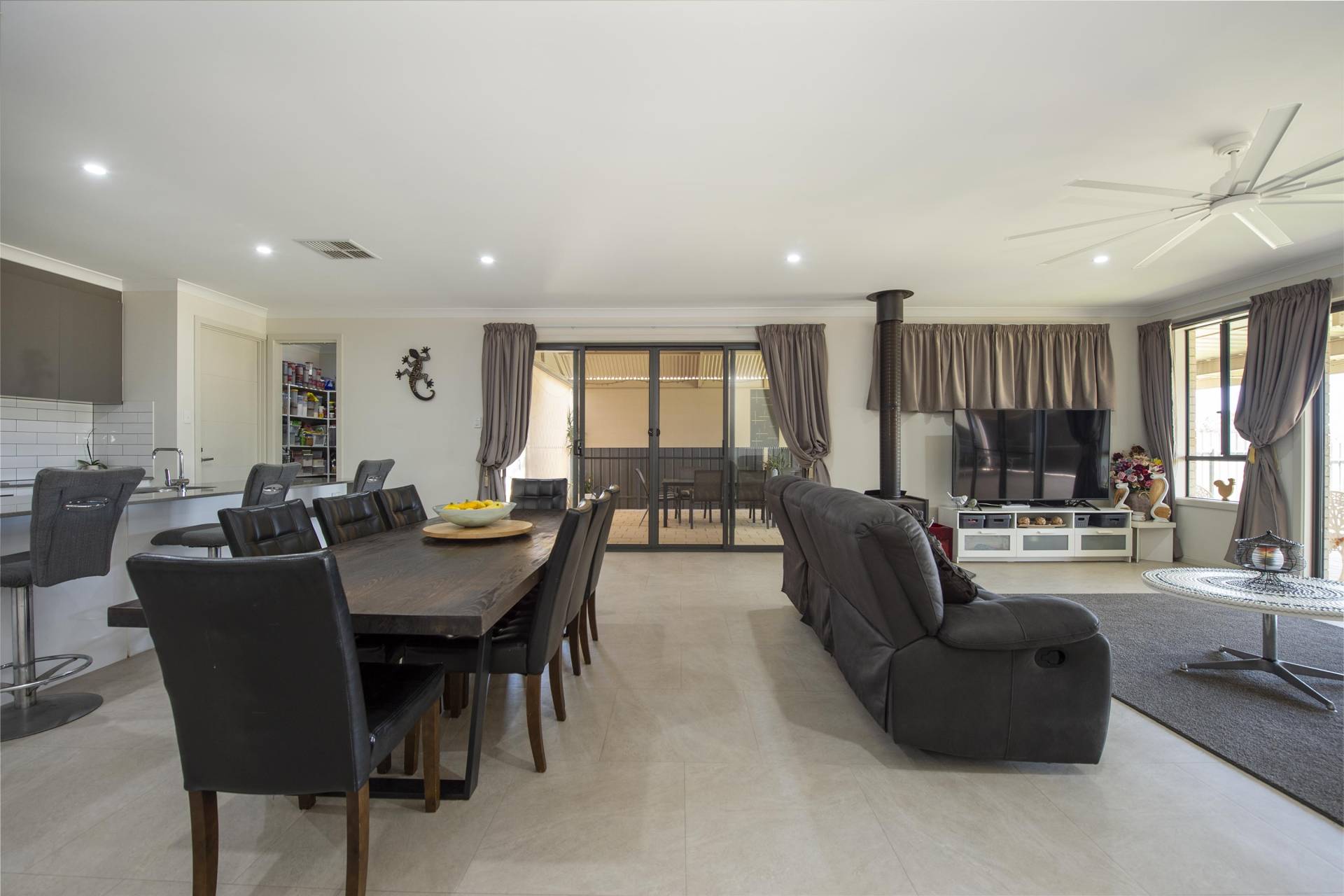 Open plan living is at a premium with the kitchen boasting dishwasher, stone bench tops and butler's pantry and overlooks the family area that allows access to the outdoors with wood fire to keep you toasty during winter. Transform your indoor entertaining to the outdoors and this can't be understated catering for gabled bbq area to the West of the home with zip track blinds creating privacy and protection from the South flowing round to the rear of the home set up for large gatherings and both areas overlook the amazing inground solar heated swimming pool and manicured gardens it will feel like you're on holidays 12 months of the year.