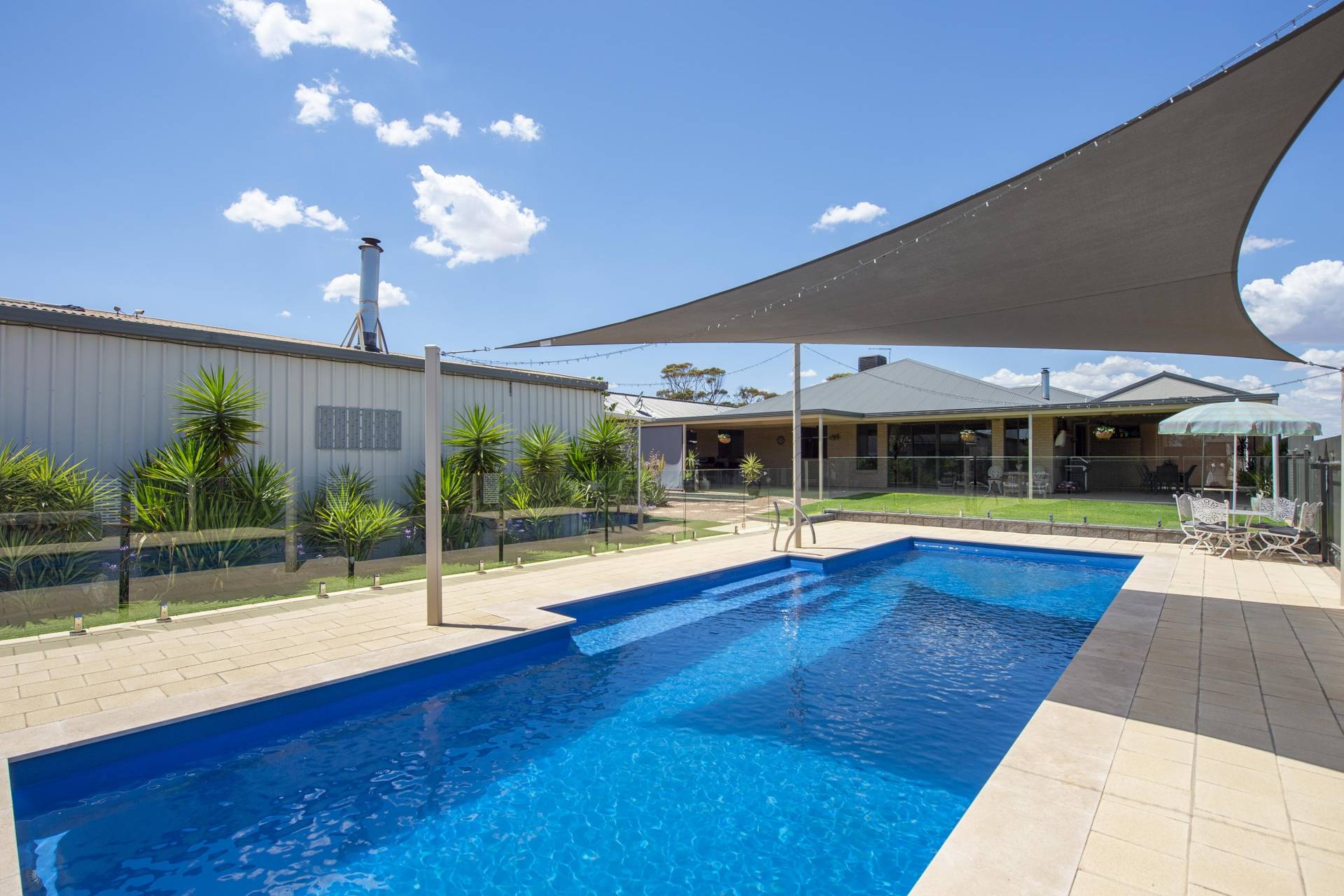 If that wasn't enough there's an external games room/extra shed space with built-in bar, shower and toilet that compliments the swimming pool plus plenty of shedding with roller doors, fenced area for caravan storage, shade house and for the cold months of the year a sheltered area to the rear of the block ideal for a fire pit. Added bonus of 50,000 litres of rainwater plumbed to the house there's sure to be some cost savings.