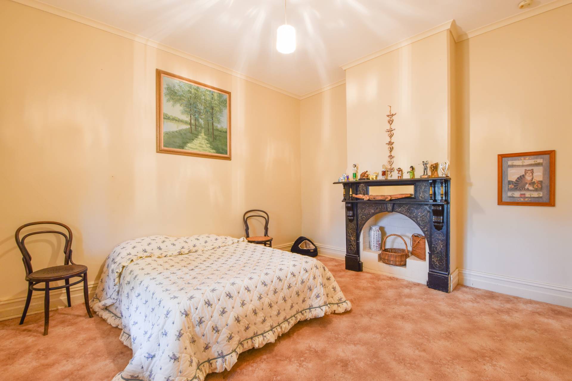 The home also includes a separate dining or lounge area, with ornate fireplace. The neutral spacious bathroom offers a shower, bath, vanity and a separate toilet for added convenience.