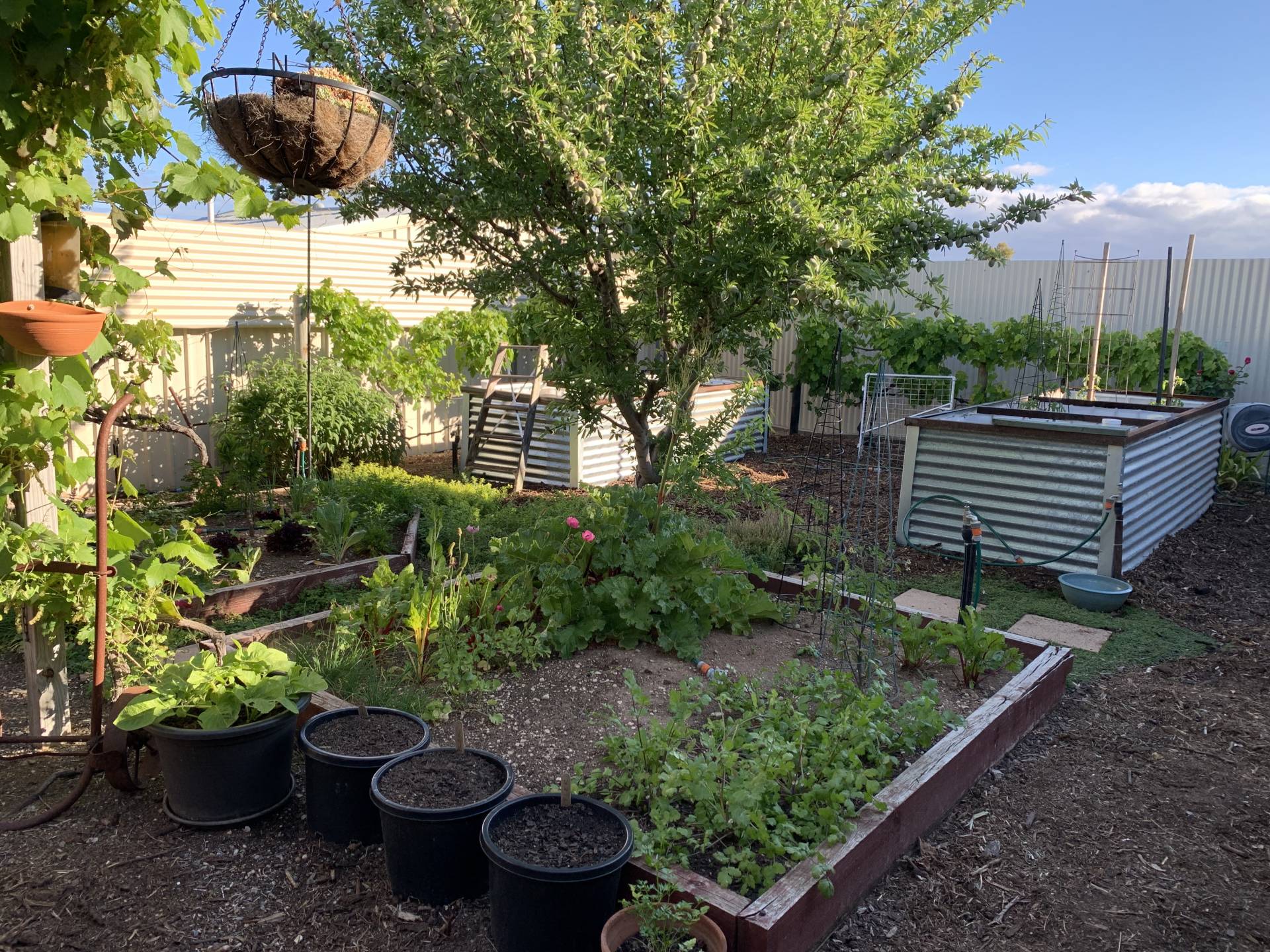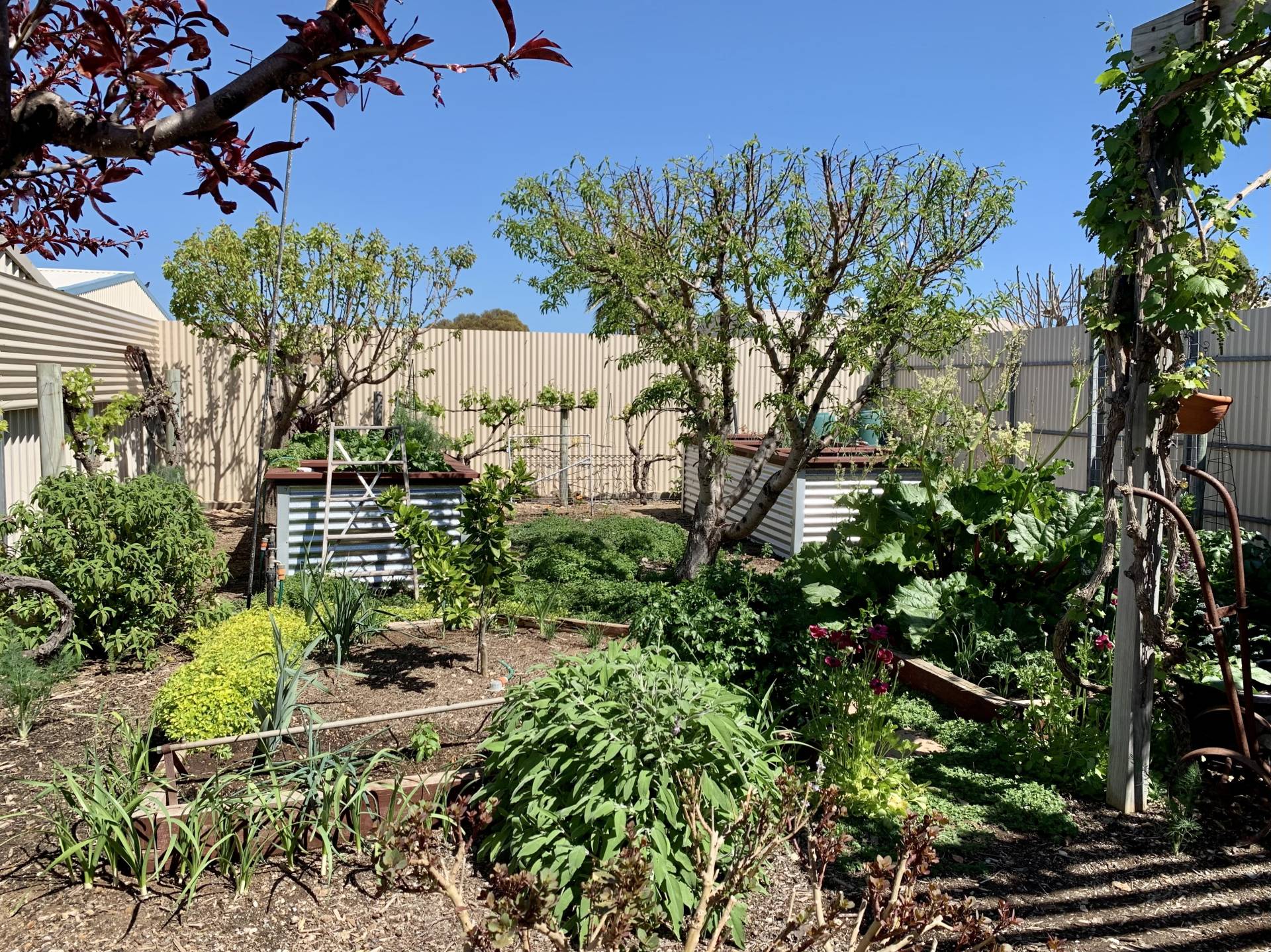 • Magnificent back veggie garden with raised beds, vines, established fruit trees, reticulated watering system & small galv rainwater tank.