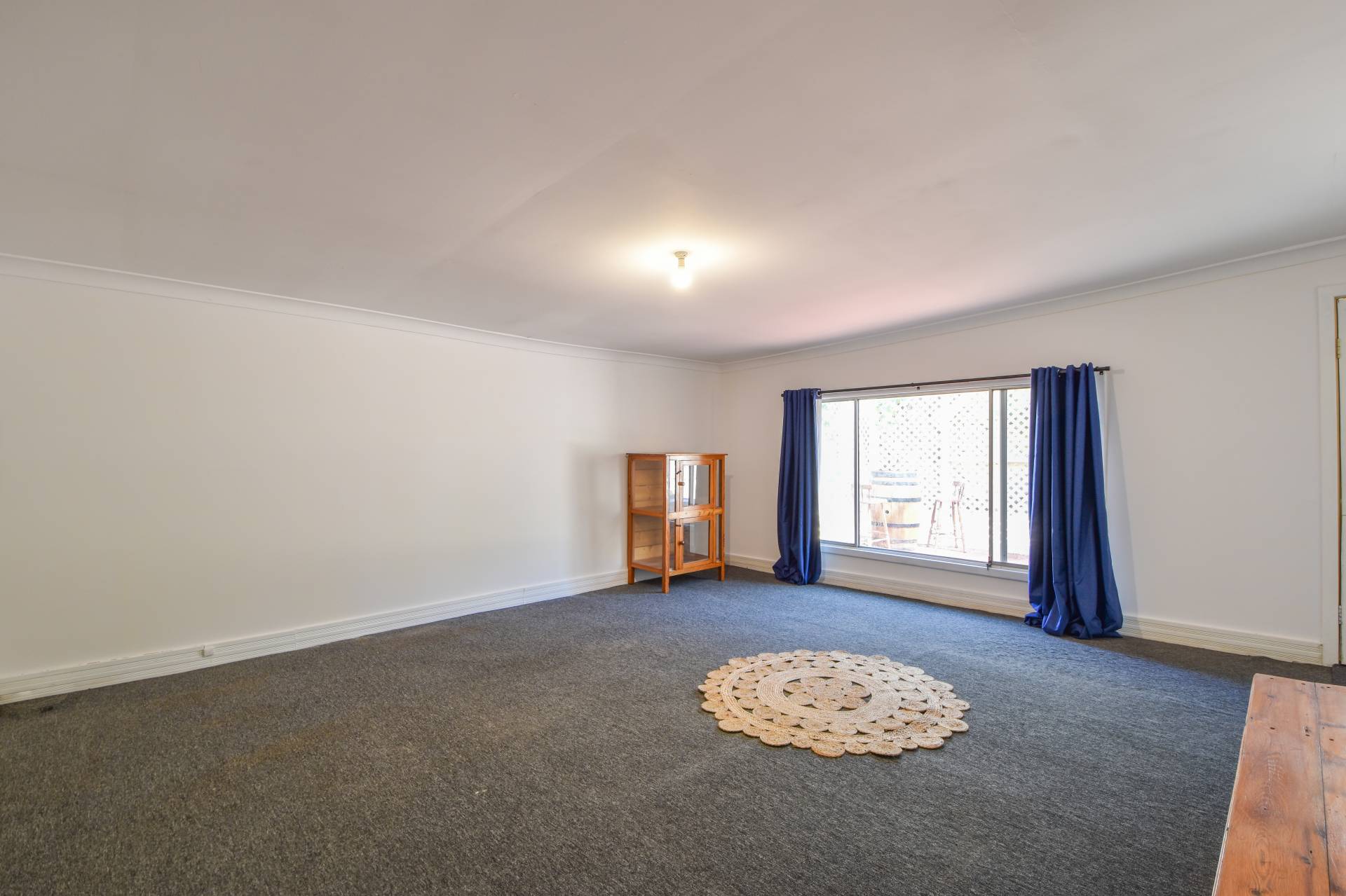 Country style kitchen in the heart of the home, with electric stove and double stainless steel sink. Large living room to the rear of the home, with the comforts of a reverse cycle split system air conditioner.