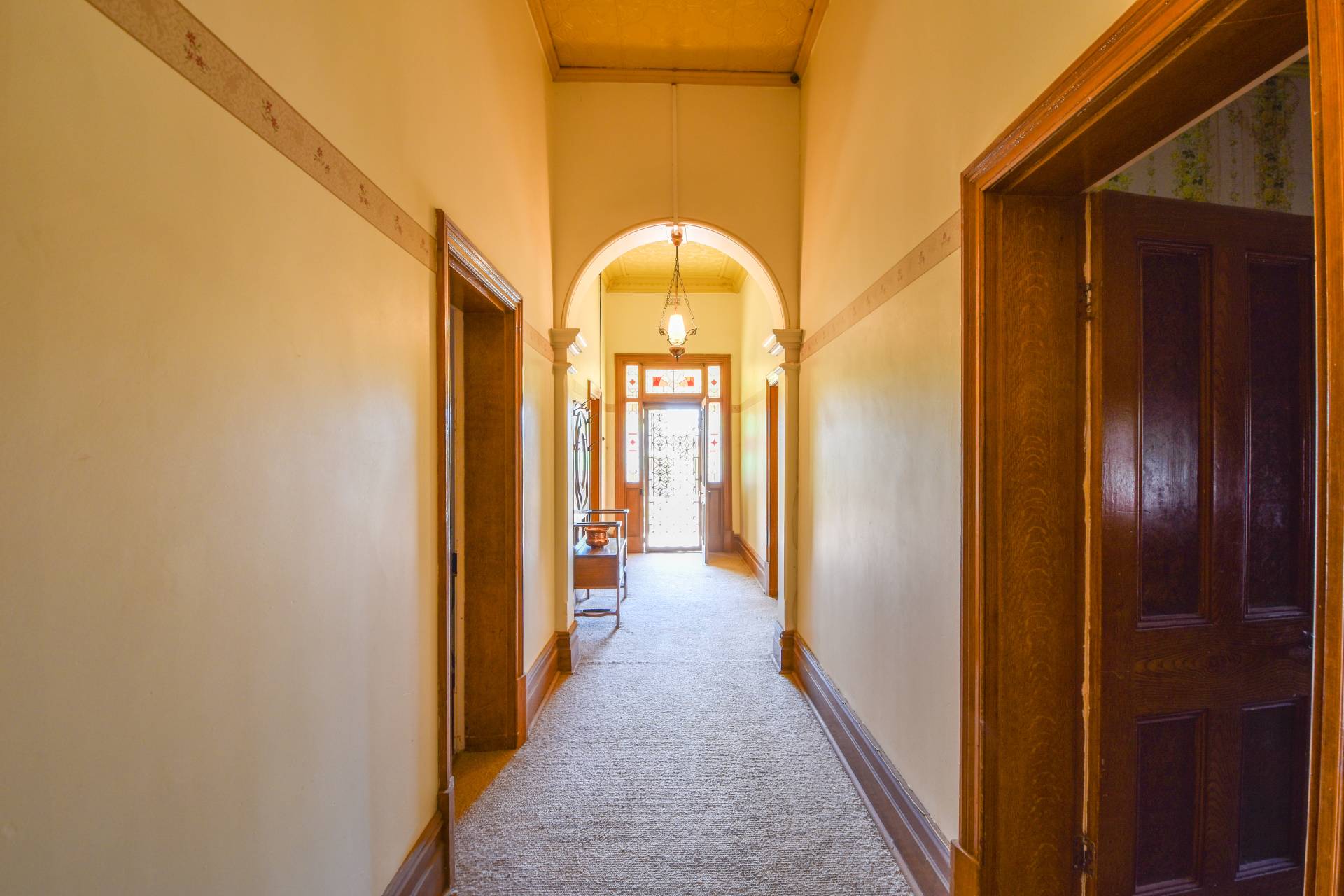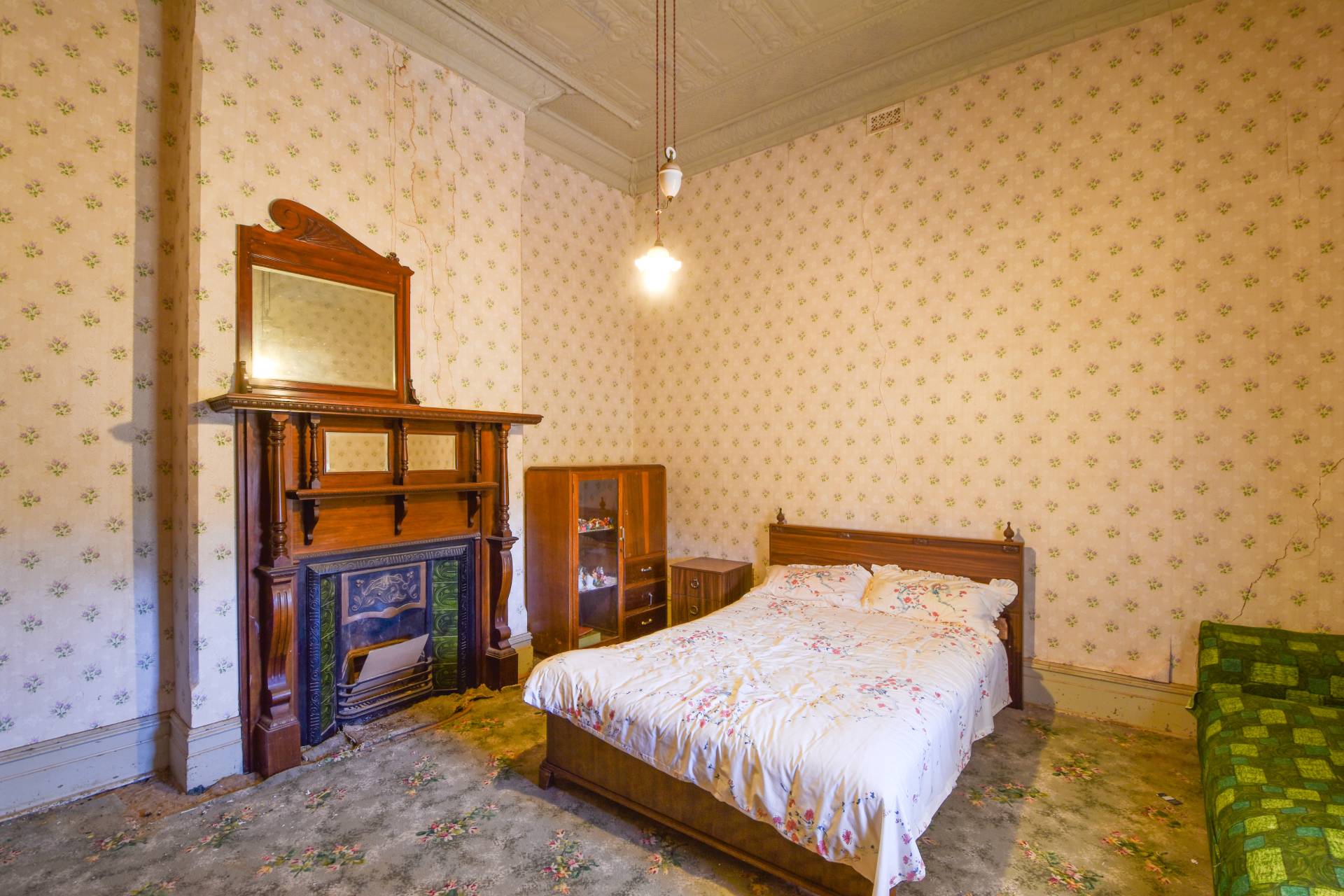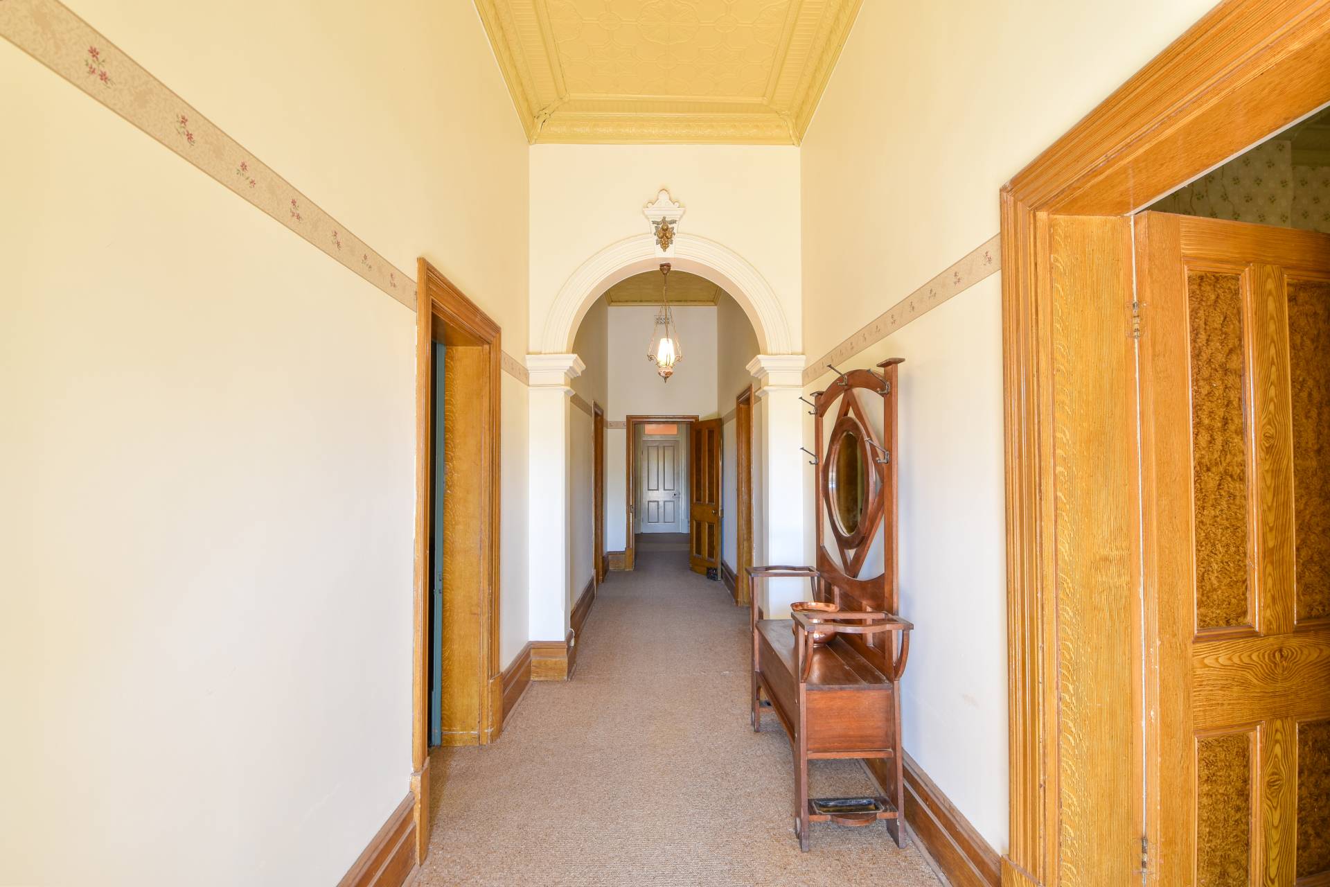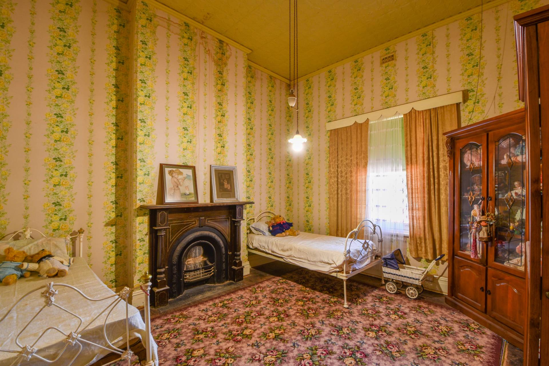 With four large bedrooms, each with ornate tin ceilings and fireplaces, there is plenty of space for the whole family. The generous eat-in kitchen is equipped with an electric stove, stainless steel sink, and a wood stove.