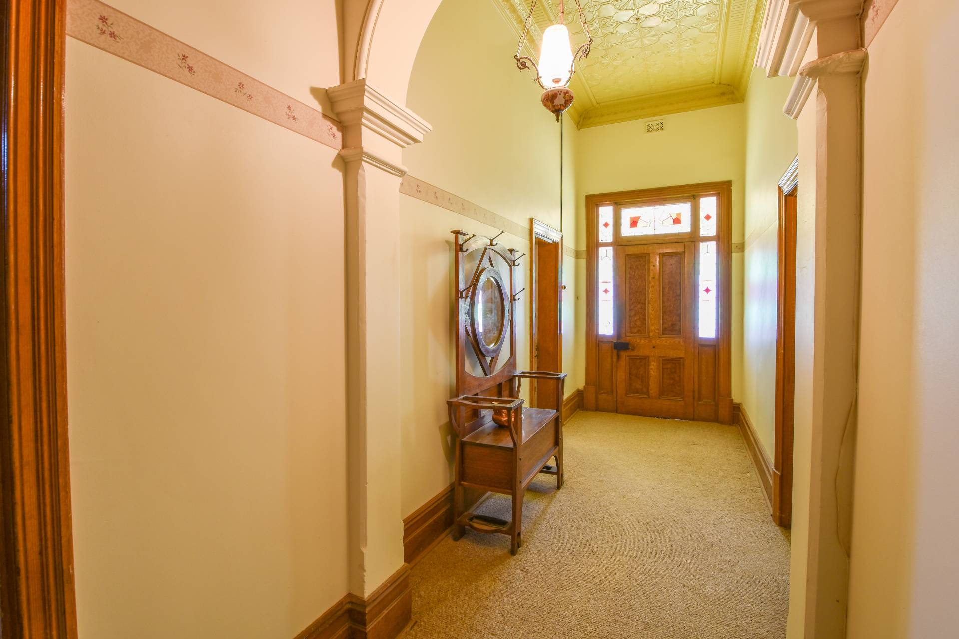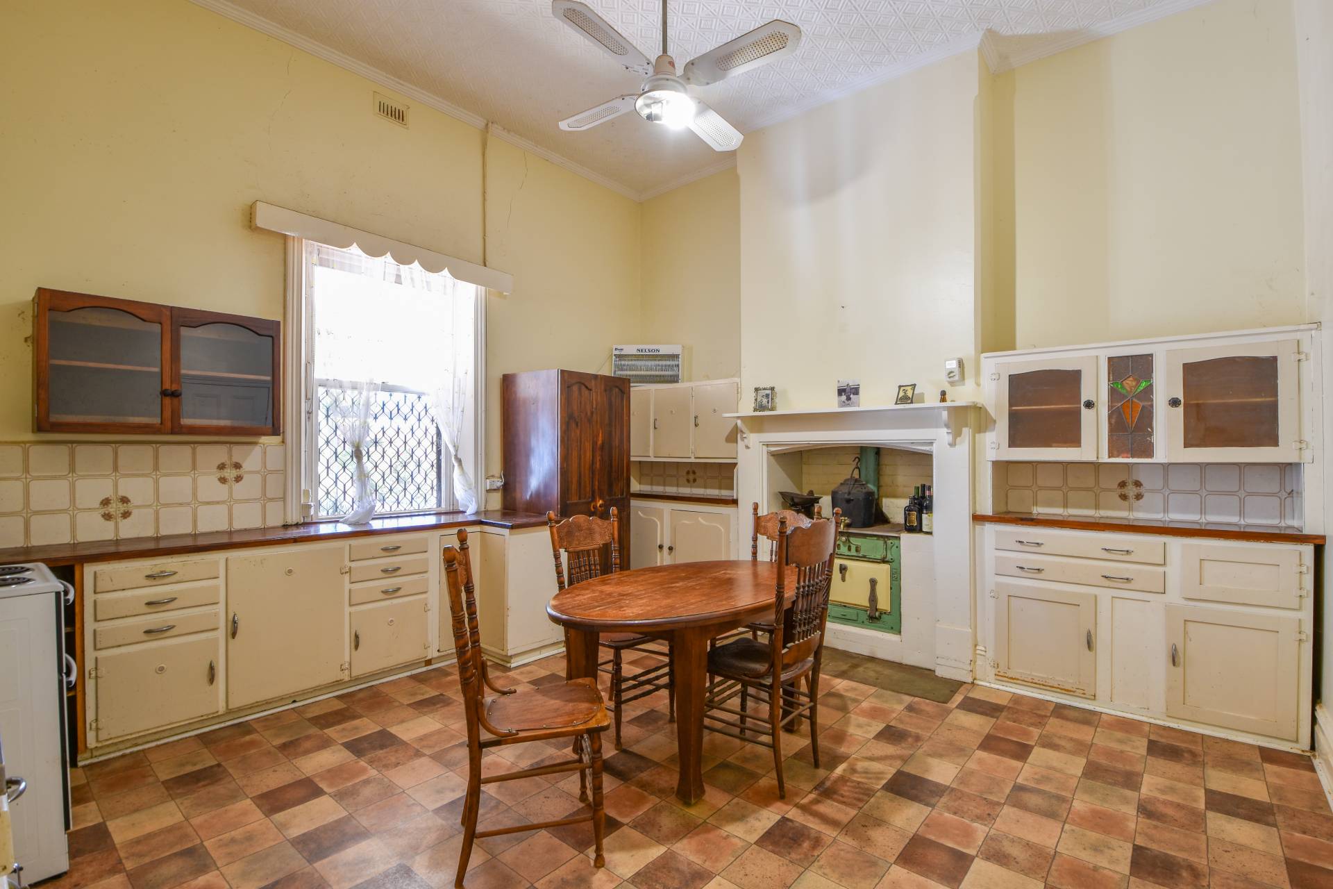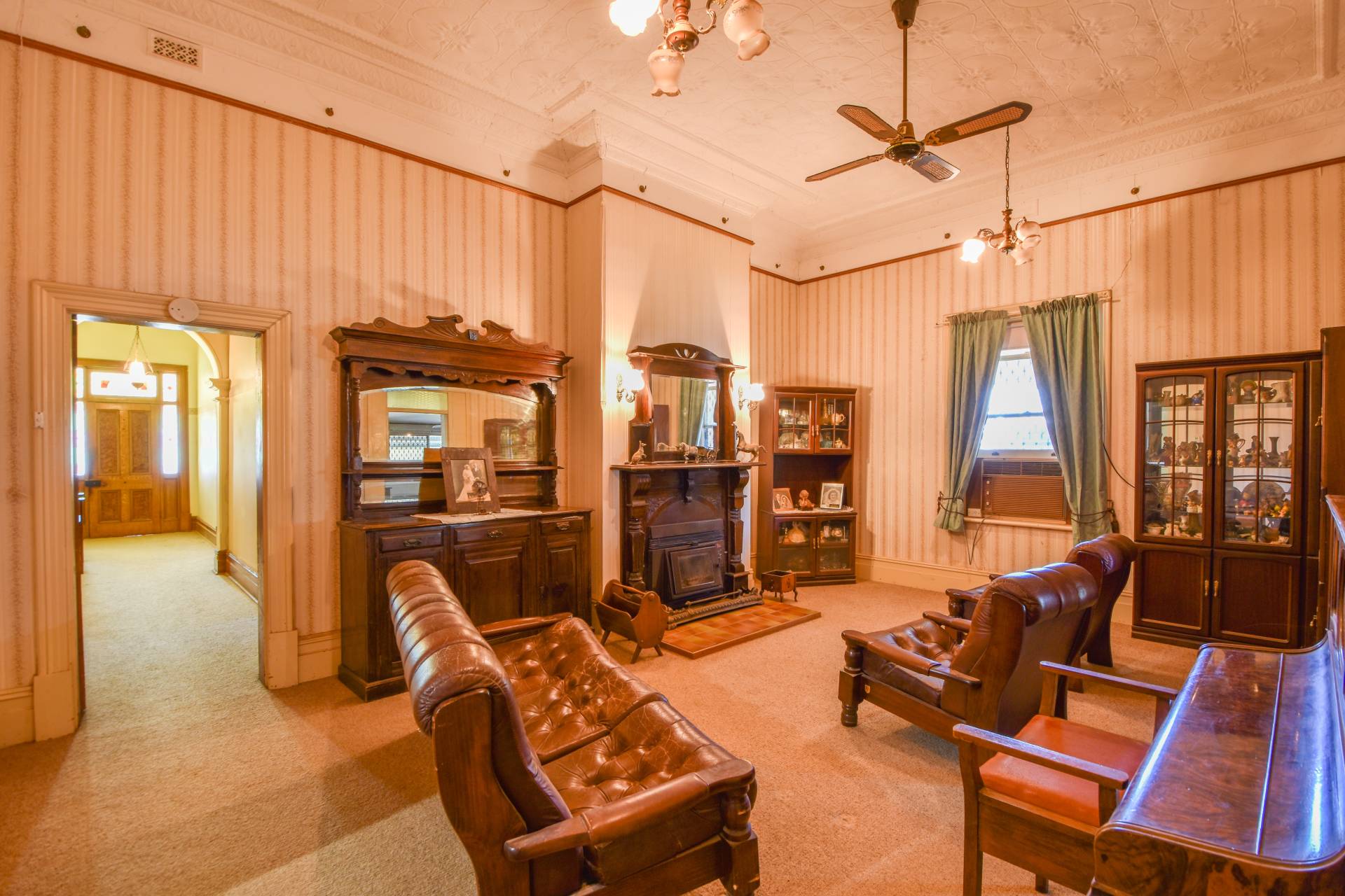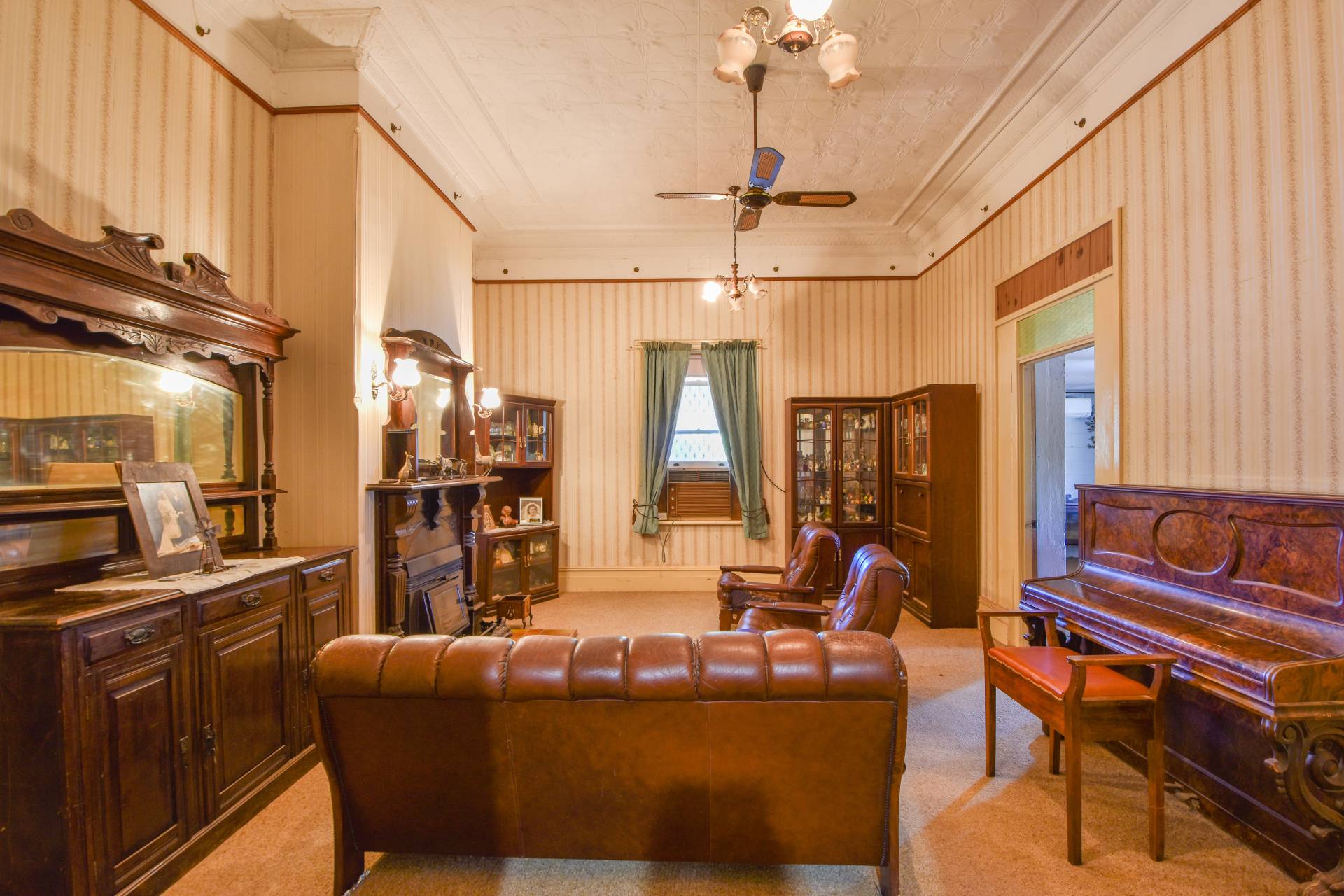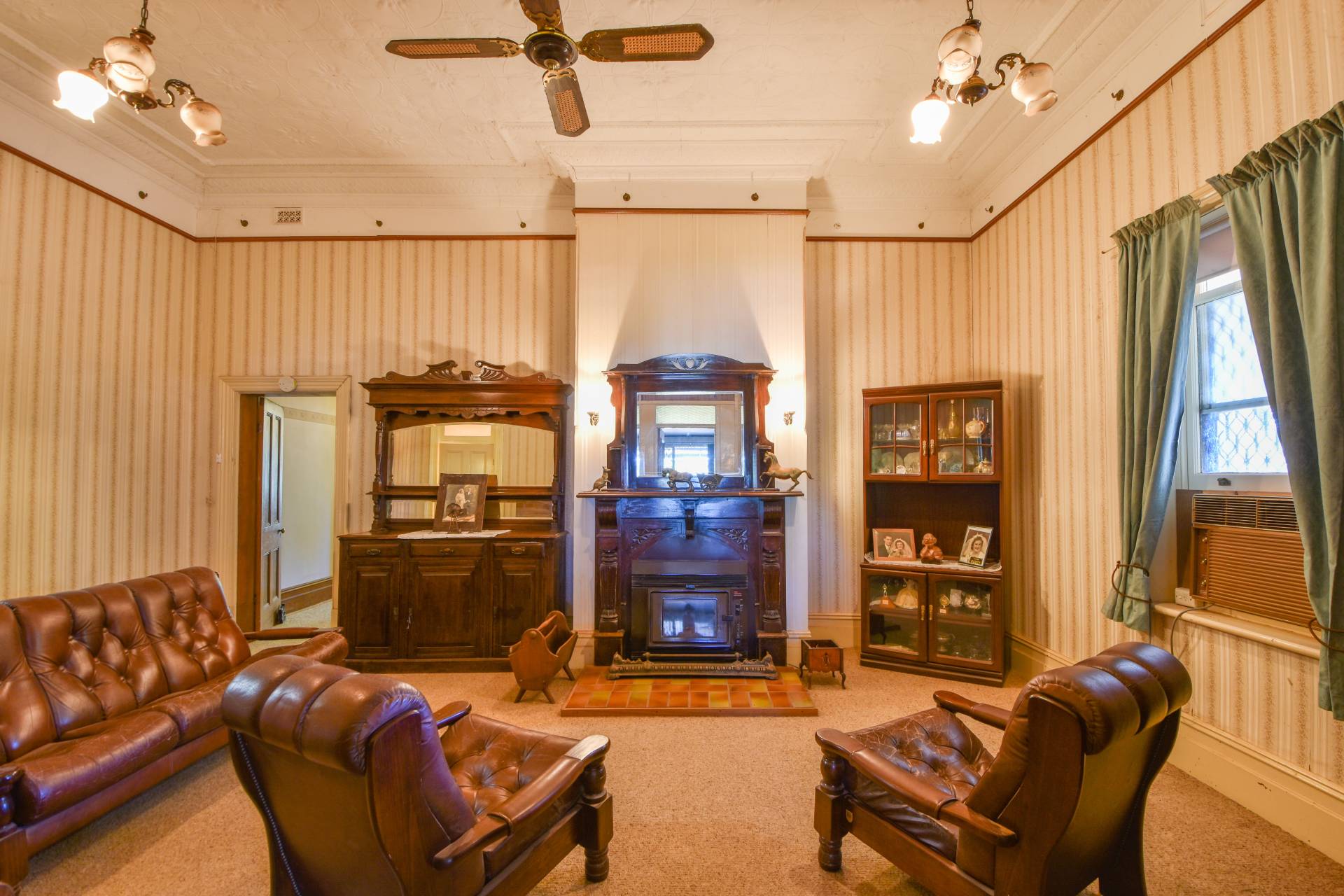 The spacious home offers two living areas, main lounge features ornate tin ceilings and ornate fireplace, while the rear living area includes a split system air conditioner, ceiling fan and a slow combustion wood fire for year-round comfort.