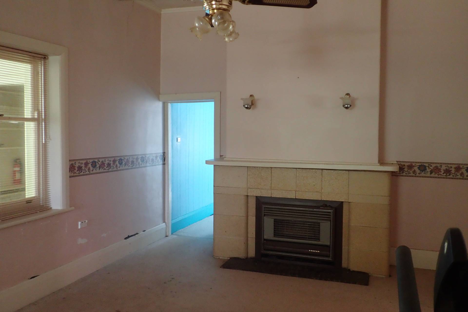 - Lounge room has combustion heater and ceiling fans with some water damage to the ceiling