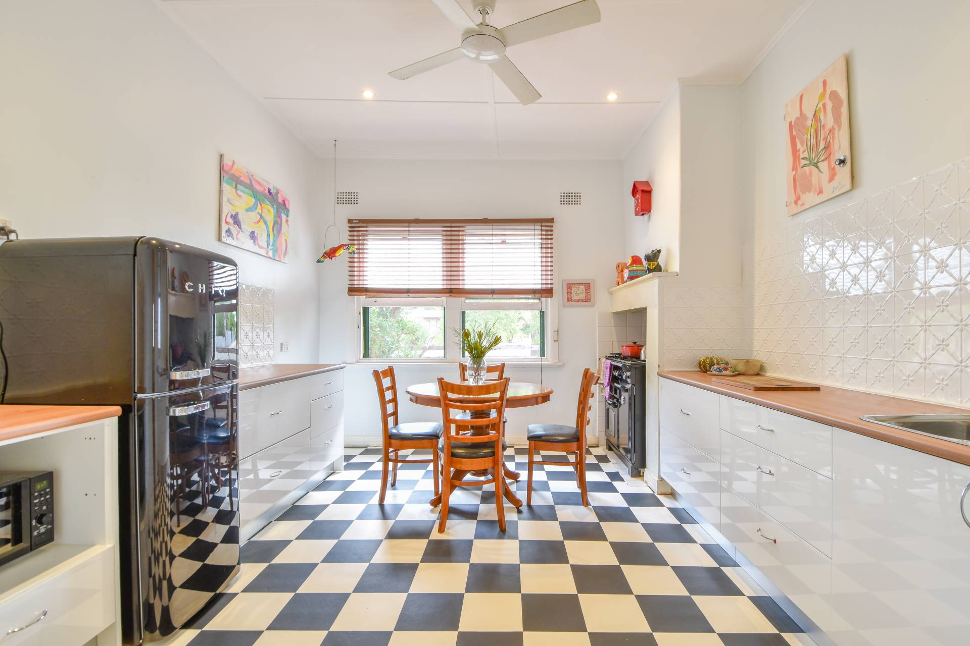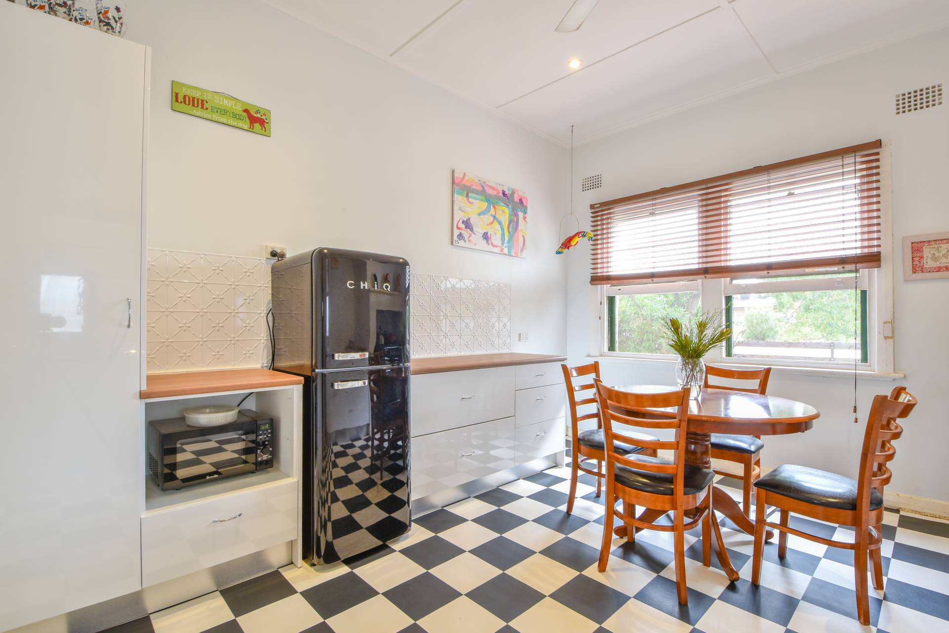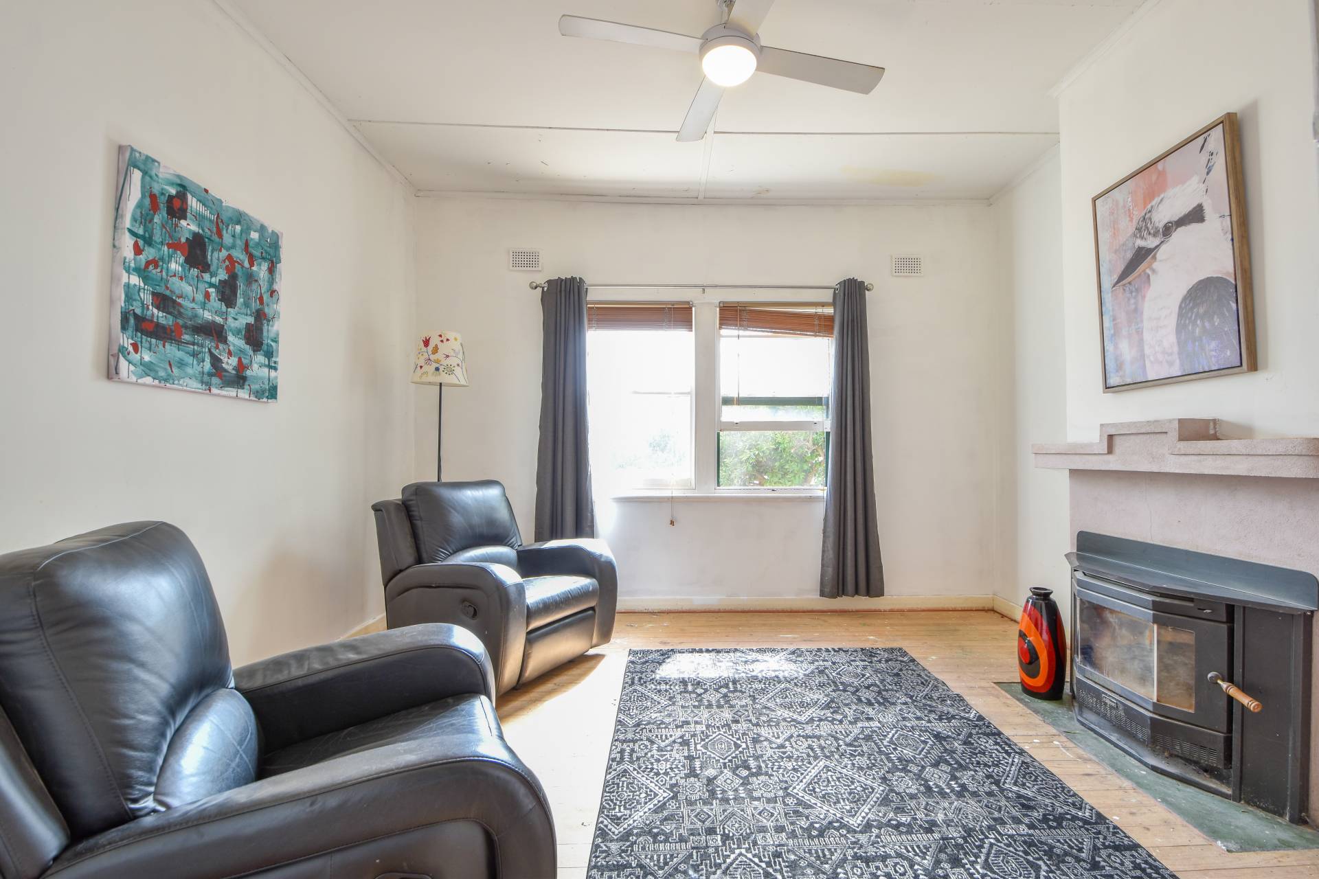 The lounge radiates warmth with its slow combustion heater, inviting you to unwind and relax. Meanwhile, the kitchen, recently renovated, eagerly awaits your personal touch. New cabinetry, benchtops, and a pressed tin splashback provide a fresh canvas, although the 900mm oven with gas cooktop will require replacement.