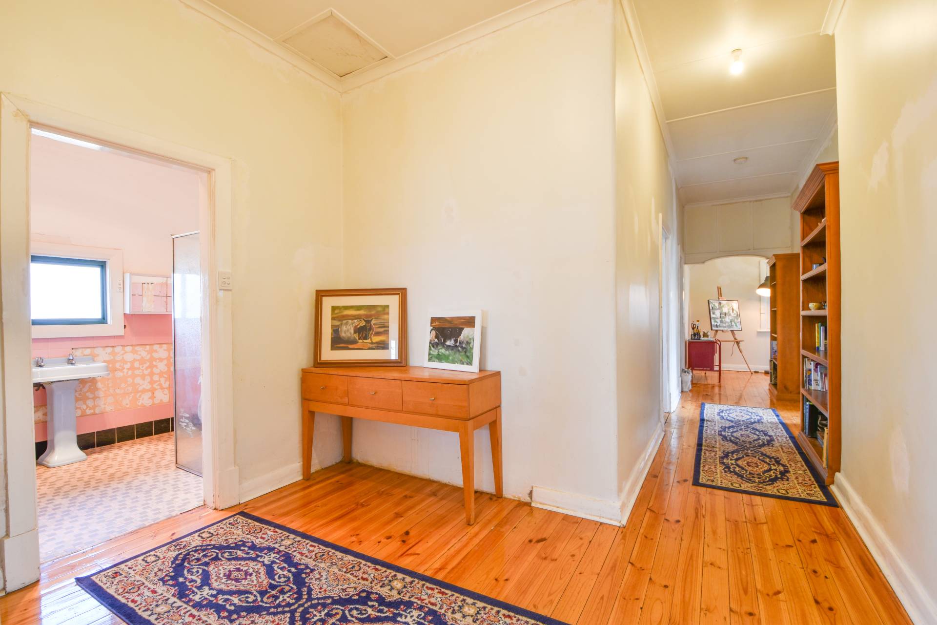 While the bathroom remains functional, it's in need of a little tender loving care, particularly with certain tiles requiring repair. Outside, a separate laundry offers convenience with its concrete floor and double wash trough.