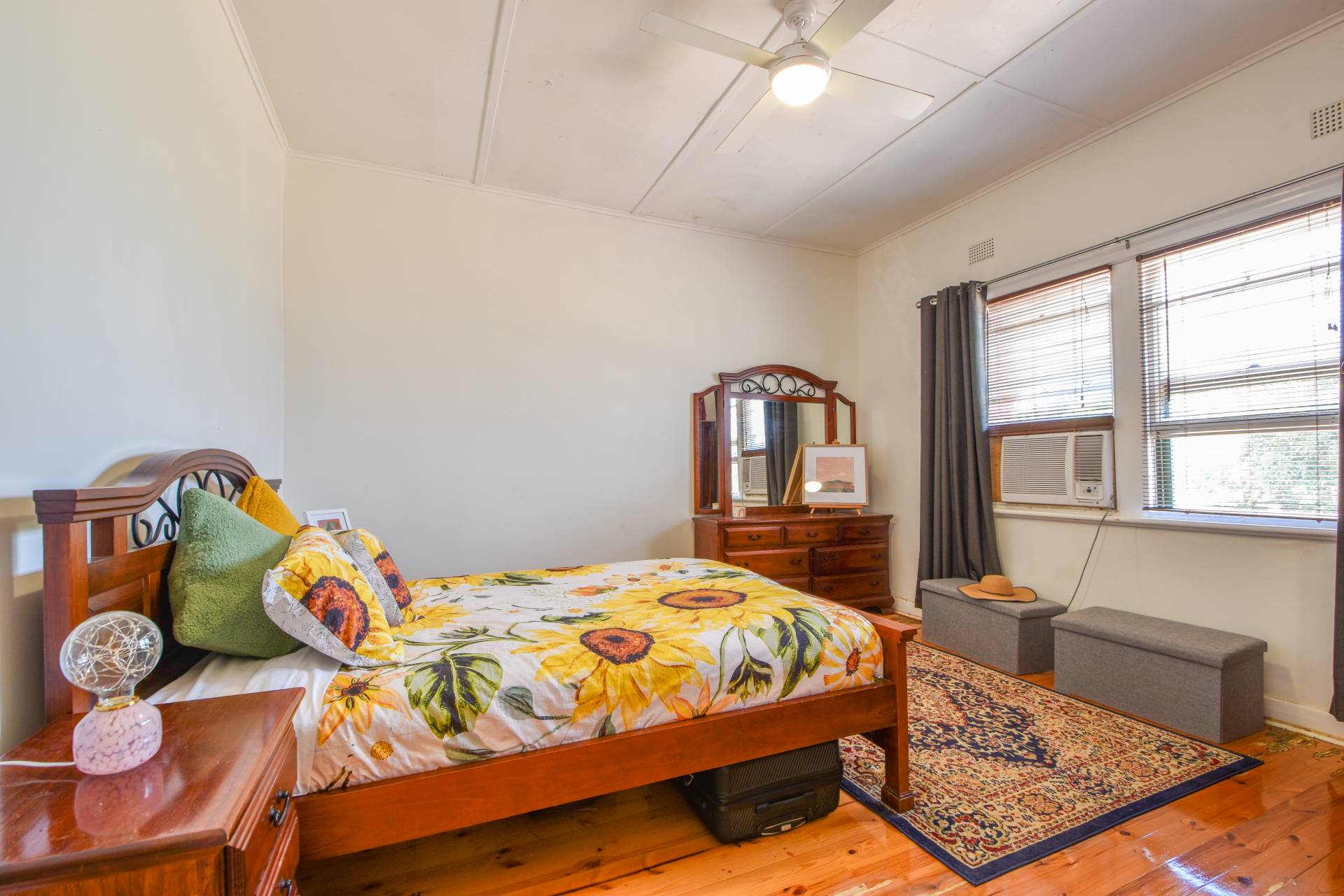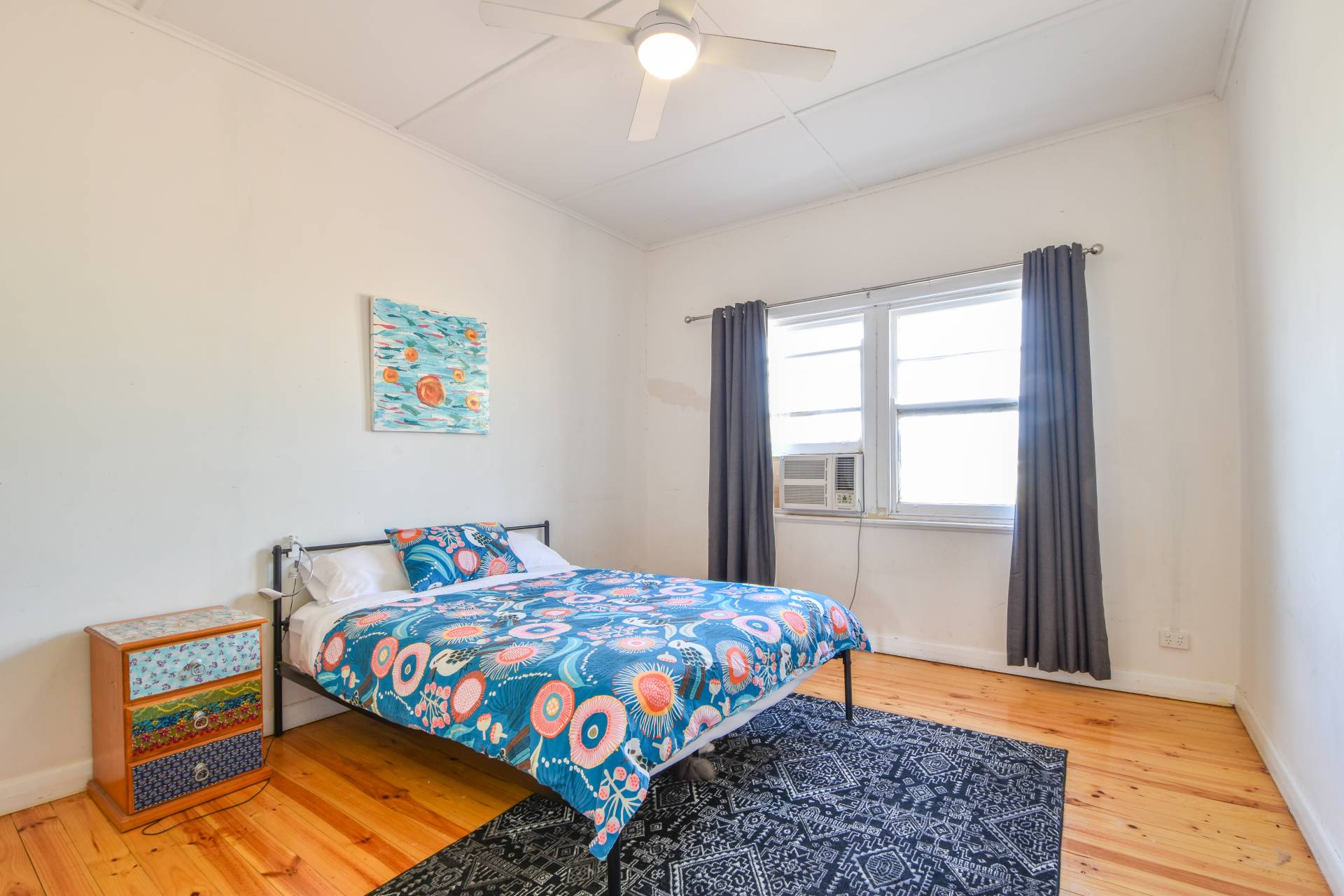 Step through the front door and you're greeted by a spacious lobby/mudroom, an ideal spot for hanging coats and hats. Inside, the cottage features rustic polished pine floorboards that guide you to the two bedrooms and lounge room.
