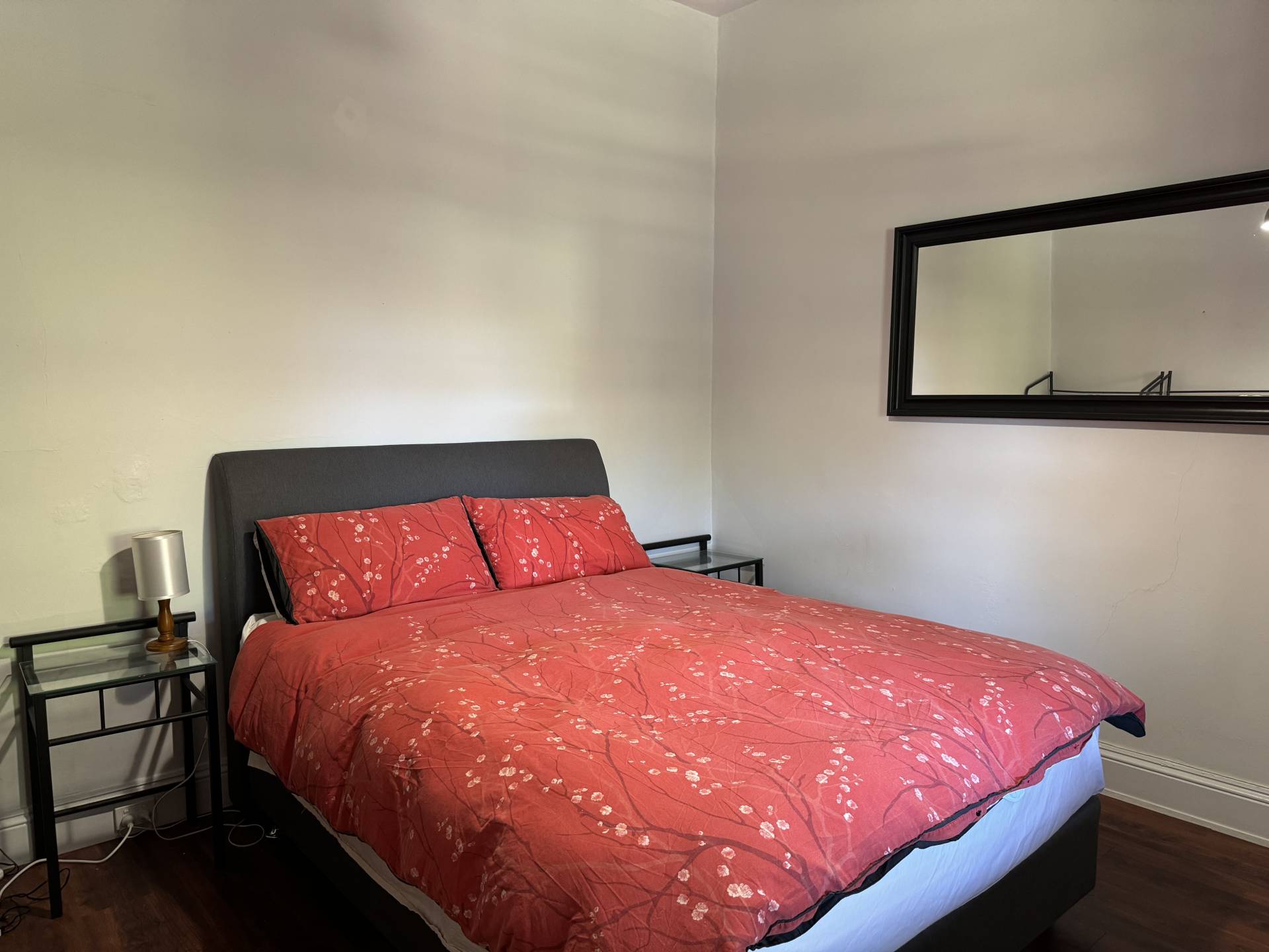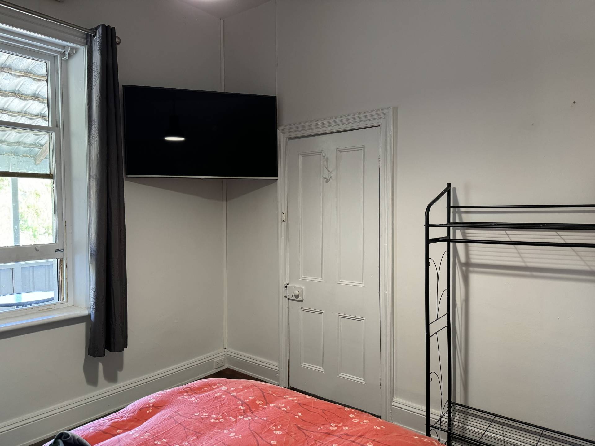 * Bedroom with S/S A/C for heating & cooling, queen bed, TV, draws & small open wardrobe               racks.