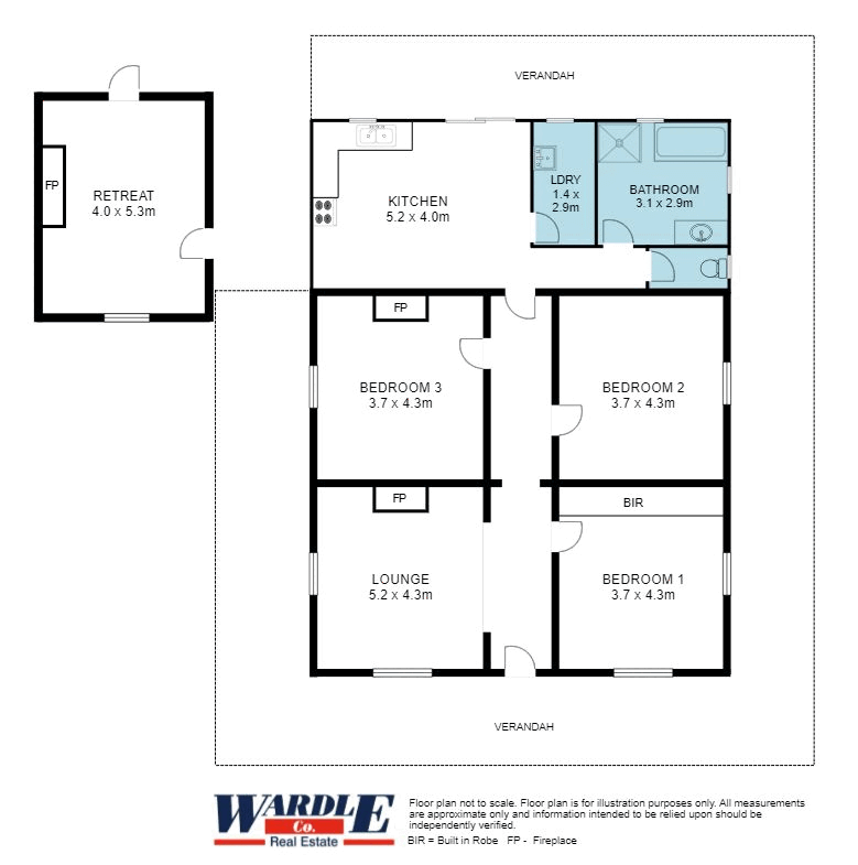 To the rear of the home is the well-equipped eat in kitchen with gas stove, double stainless steel sink and glass sliding door to the verandah. The laundry has a stainless steel wash trough and doubles as a pantry. The tiled bathroom is complete with a modern vanity, shower, bath and separate toilet.