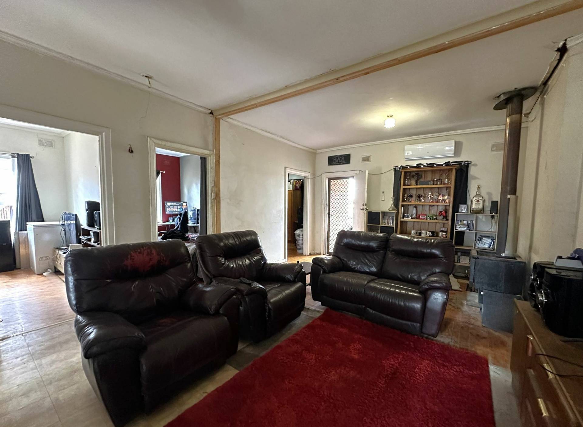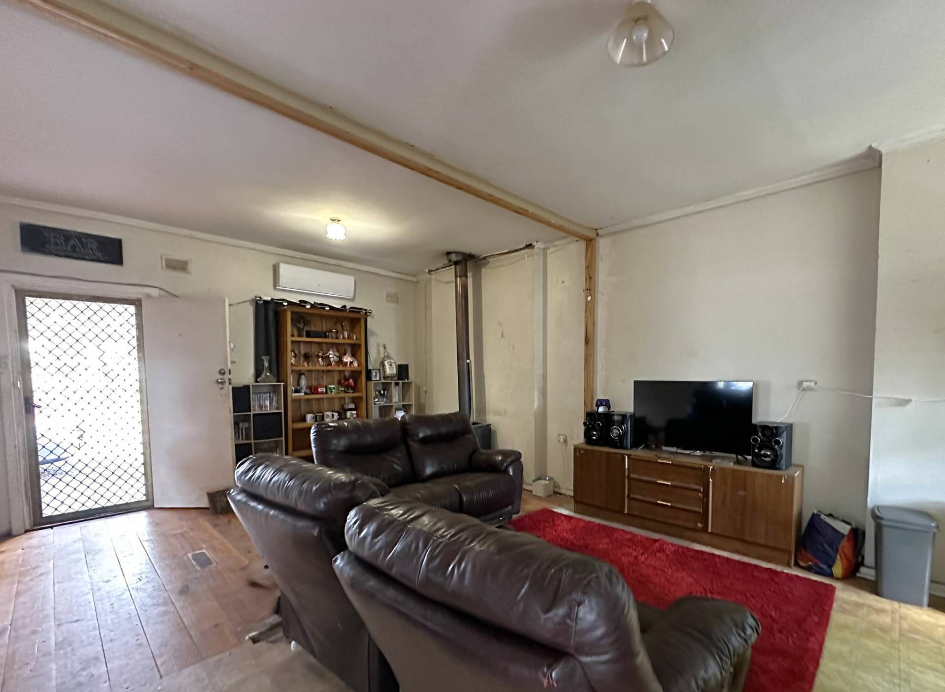 • The open plan living area has ample room and includes a reverse cycle split system & slow combustion wood heater.