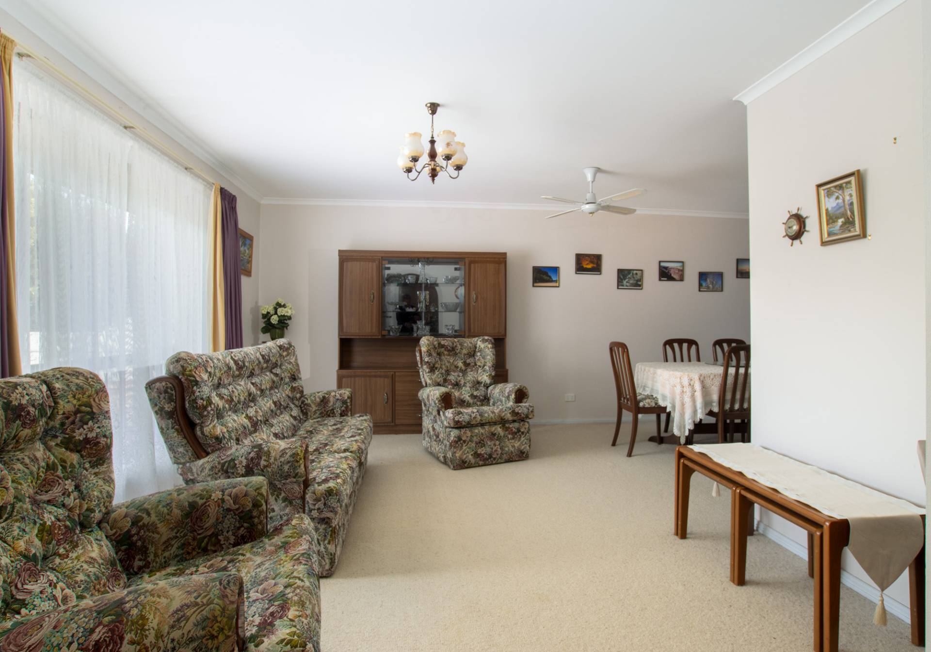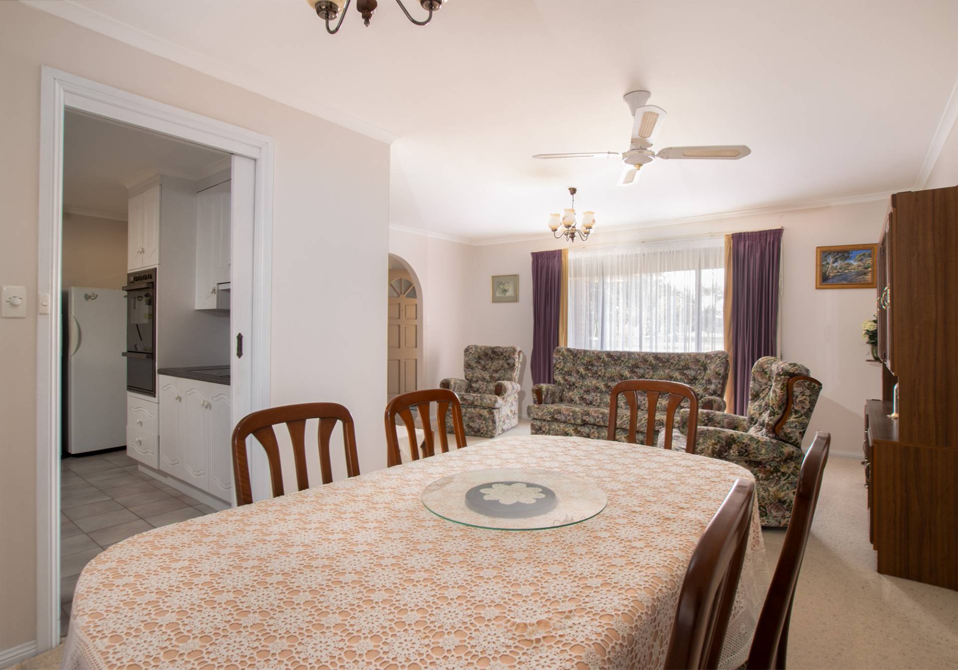 The main lounge room and dining area with ceiling fan is comfortable living and compliments the rest of the home perfectly.