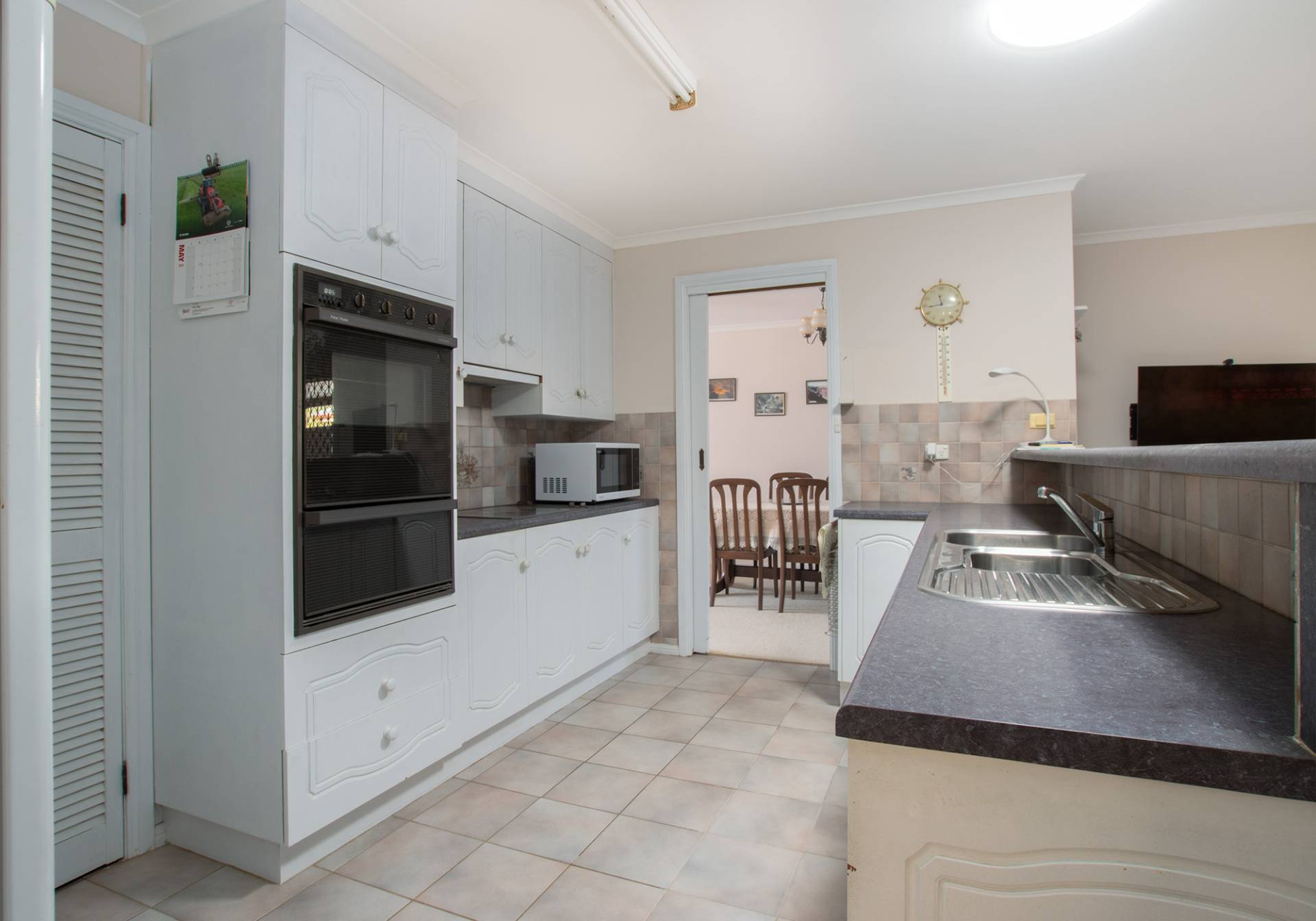 A well equipped kitchen with electric cooktop, oven and ample storage including walk in pantry.