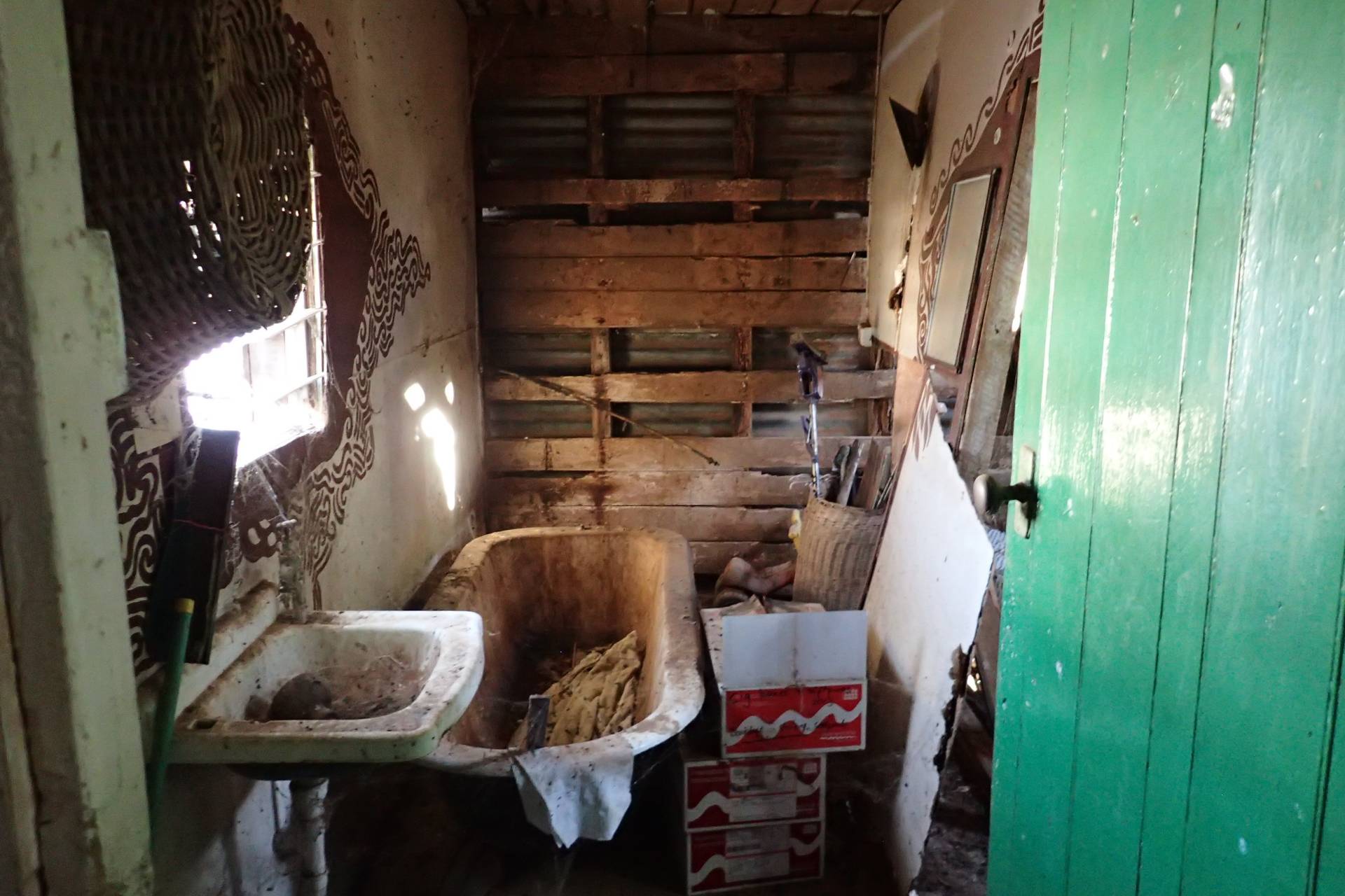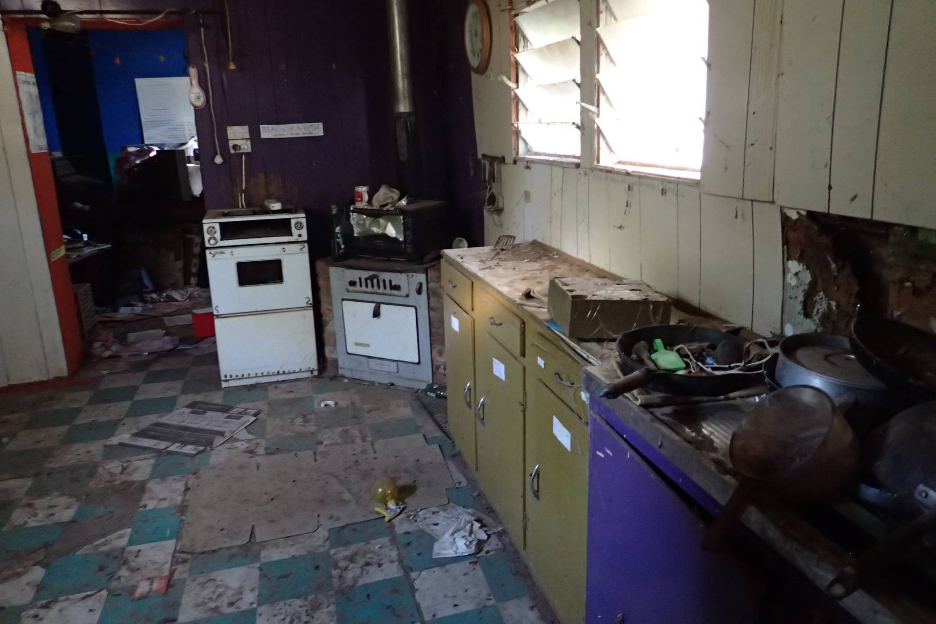 - kitchen has concrete floor, freestanding gas oven/cooktop