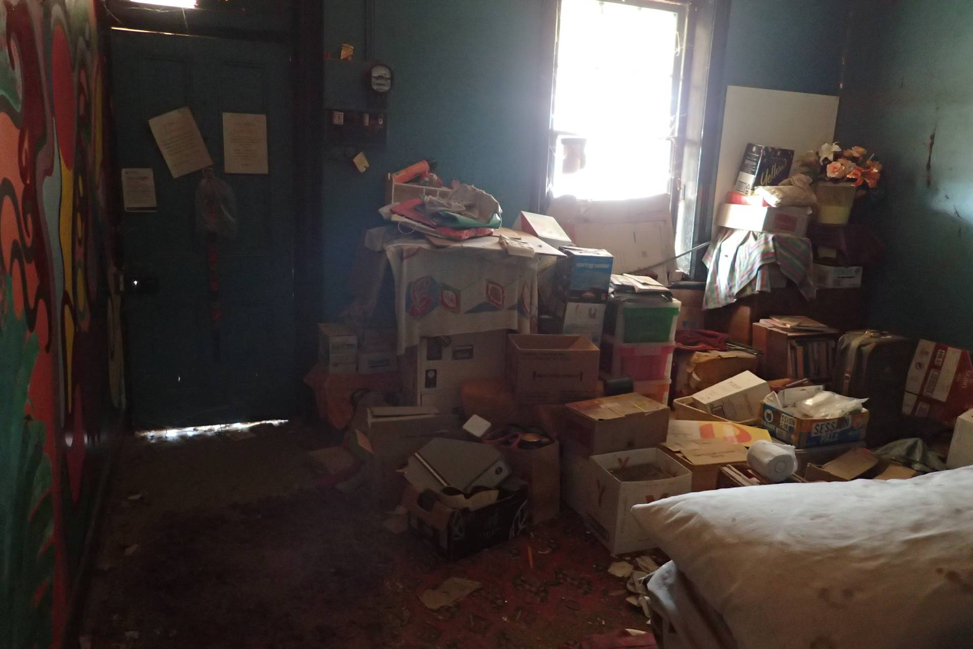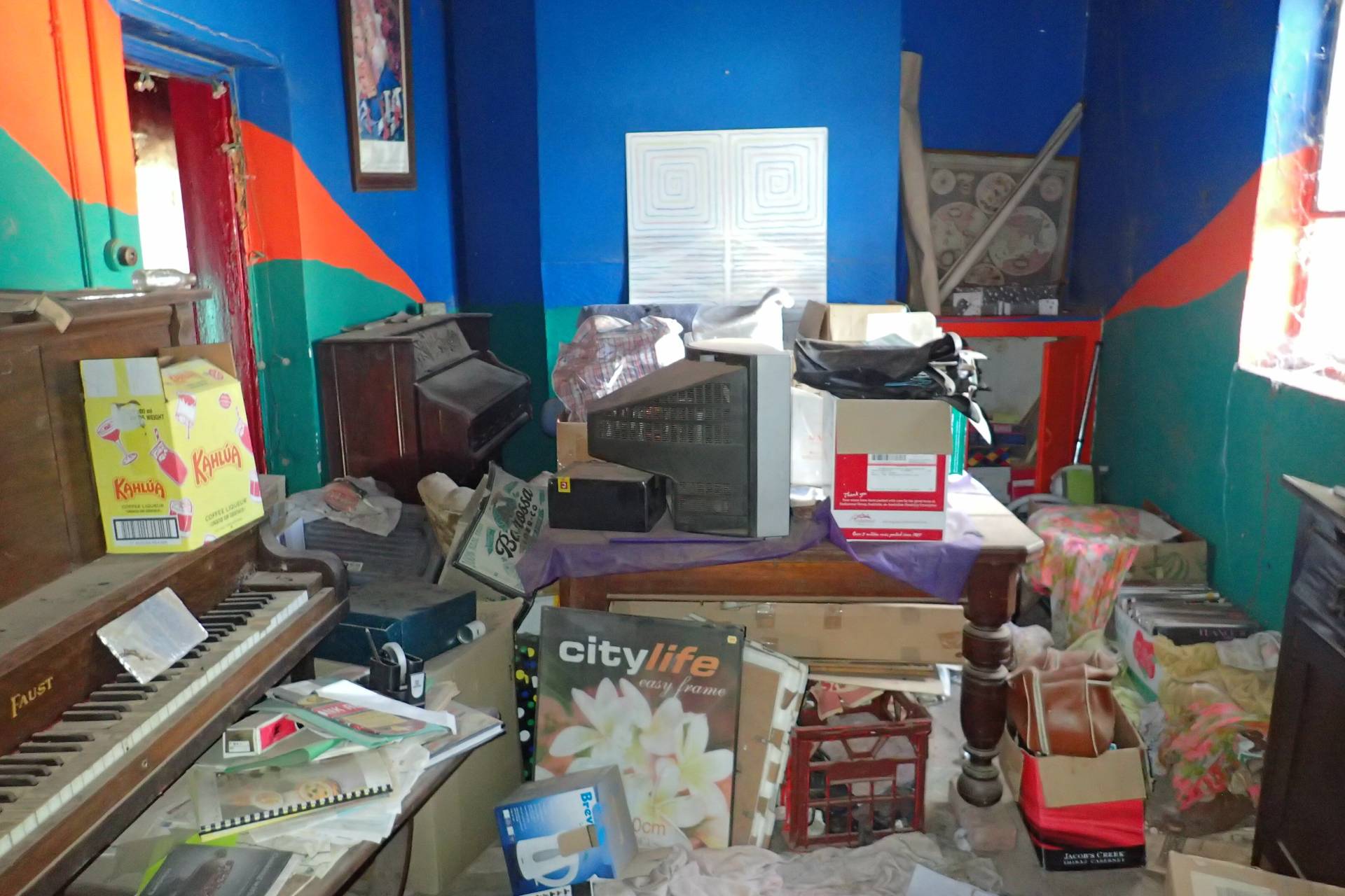 - lounge room with open fireplace