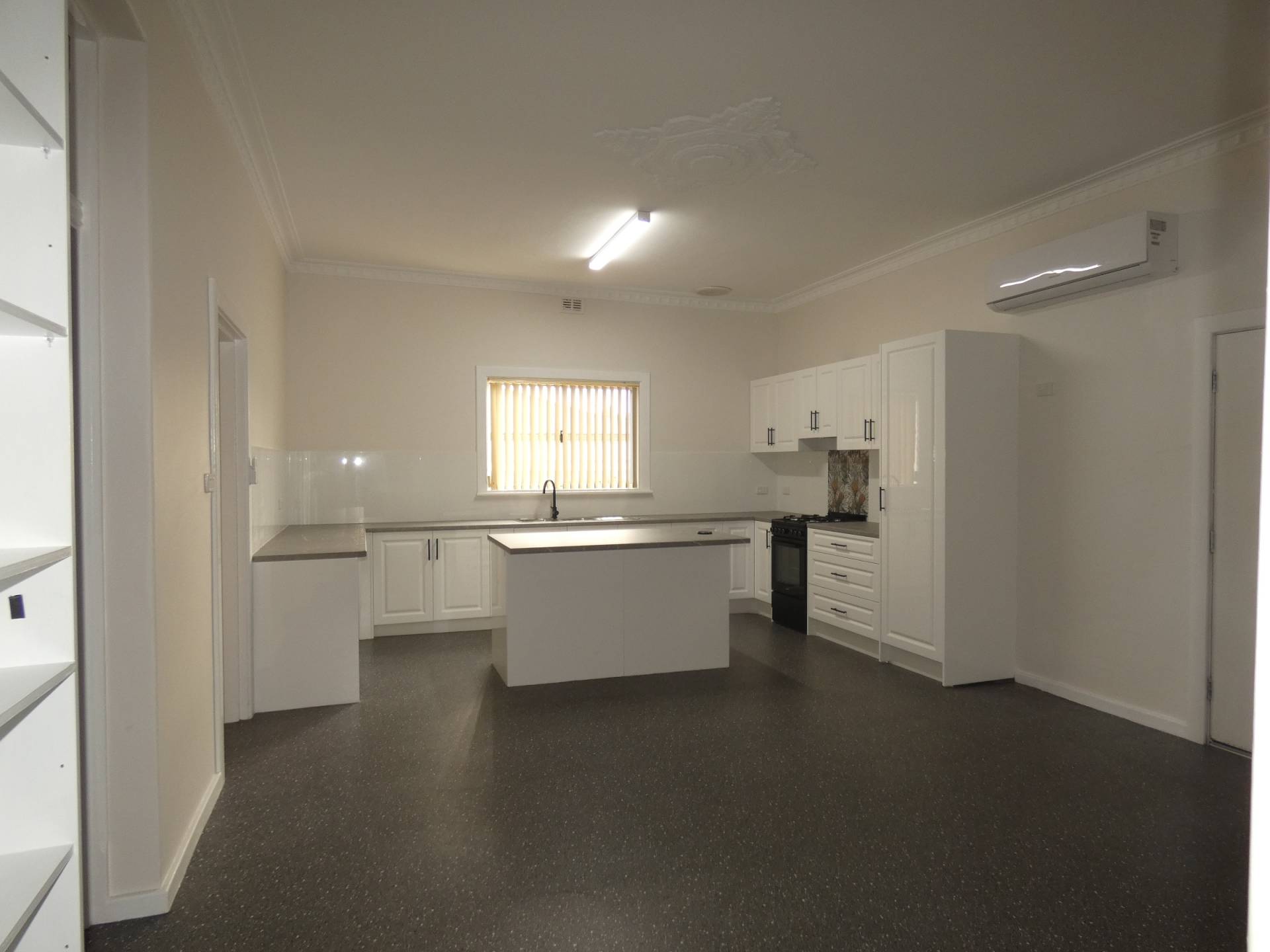 - Split system reverse cycle air conditioner and gas heater in lounge room