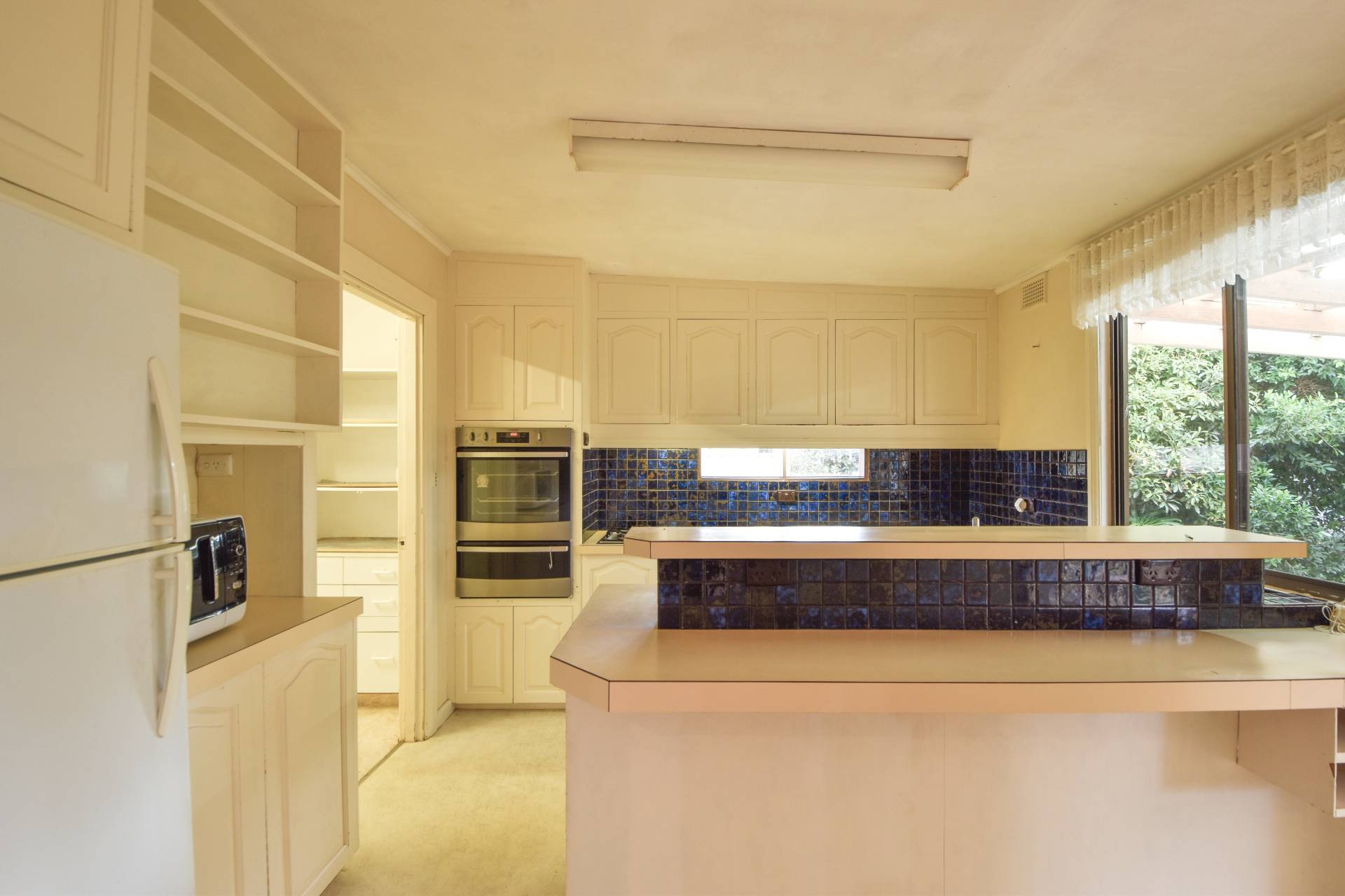 The kitchen is complete with neutral cabinetry, stainless steel wall oven, gas cooktop and double sink. A spacious pantry off the kitchen provides additional storage space.