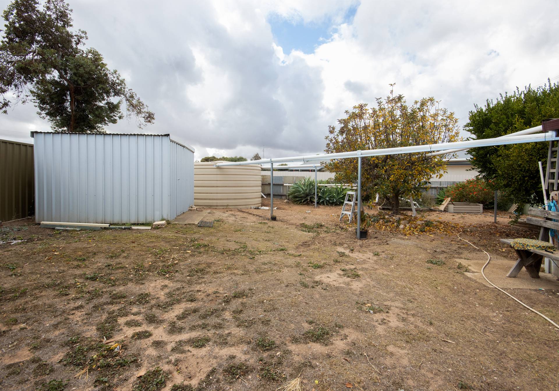 All bedrooms have ceiling fans with the master having built in robes. The kitchen has electric cooking appliances, ample cupboard space, with built in corner seating on a slate floor. The main living room has a reverse cycle split heating and cooling system and a ceiling fan. In the laundry you will find a shower, separate from the bathroom and toilet. Step outside and you will find a good-sized under-cover entertainment area, low maintenance yard, fruit trees, water tank, garden shed and a new 20’ x 18’ double garage, big enough to house the family car, boat, or small caravan. Secure your own piece of the Yorke Peninsula today.