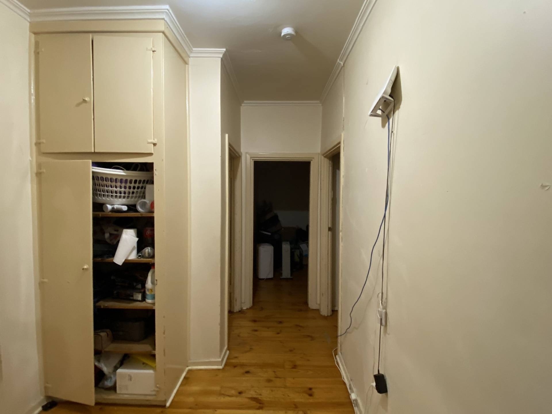 This charming maisonette ideally suited for investors or first-time homebuyers, is situated in a highly convenient location. The home features a front lounge room equipped with a small air conditioner, perfect for cozy gatherings. The eat-in kitchen retains its original cabinetry and includes a gas oven, adding a touch of nostalgia.