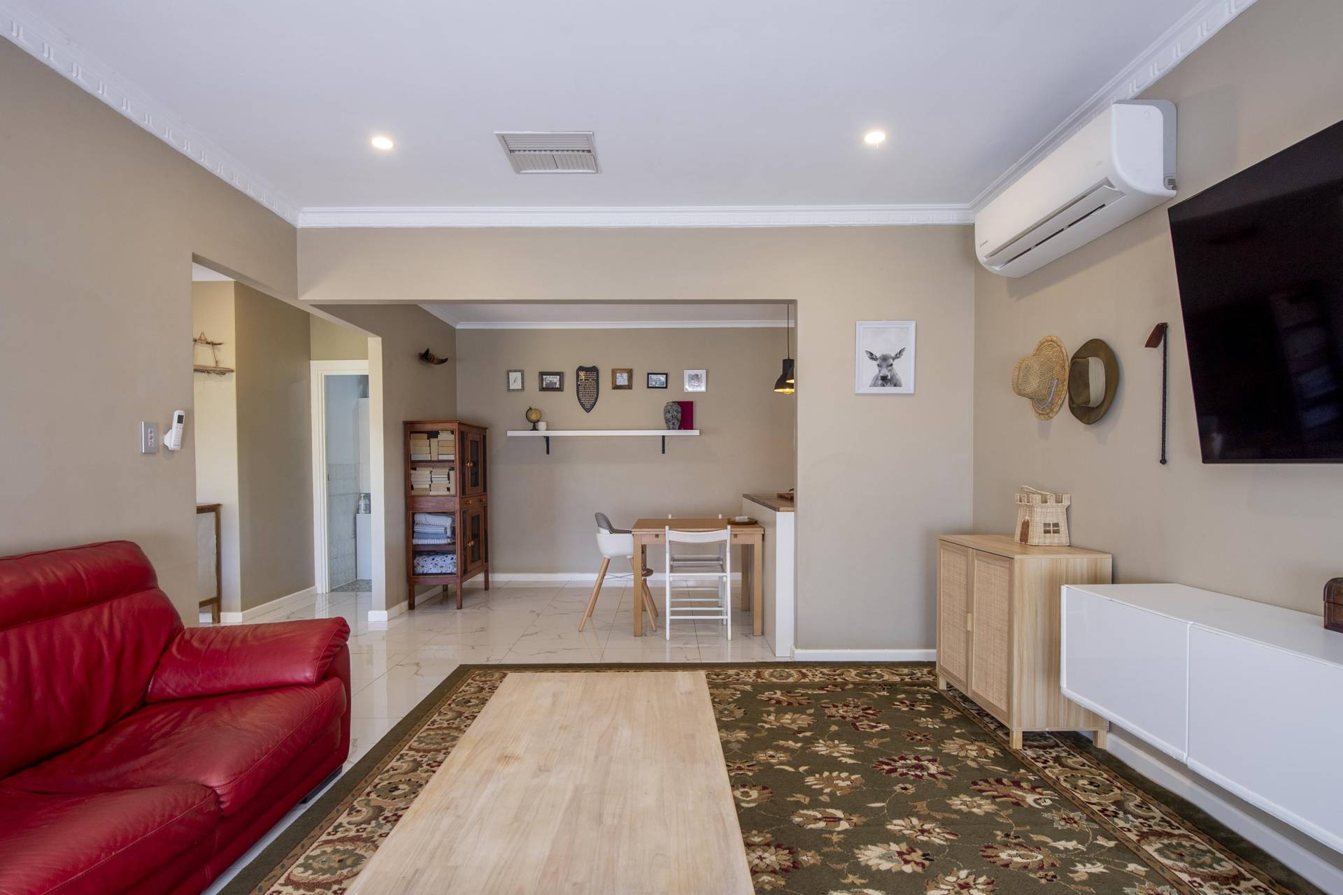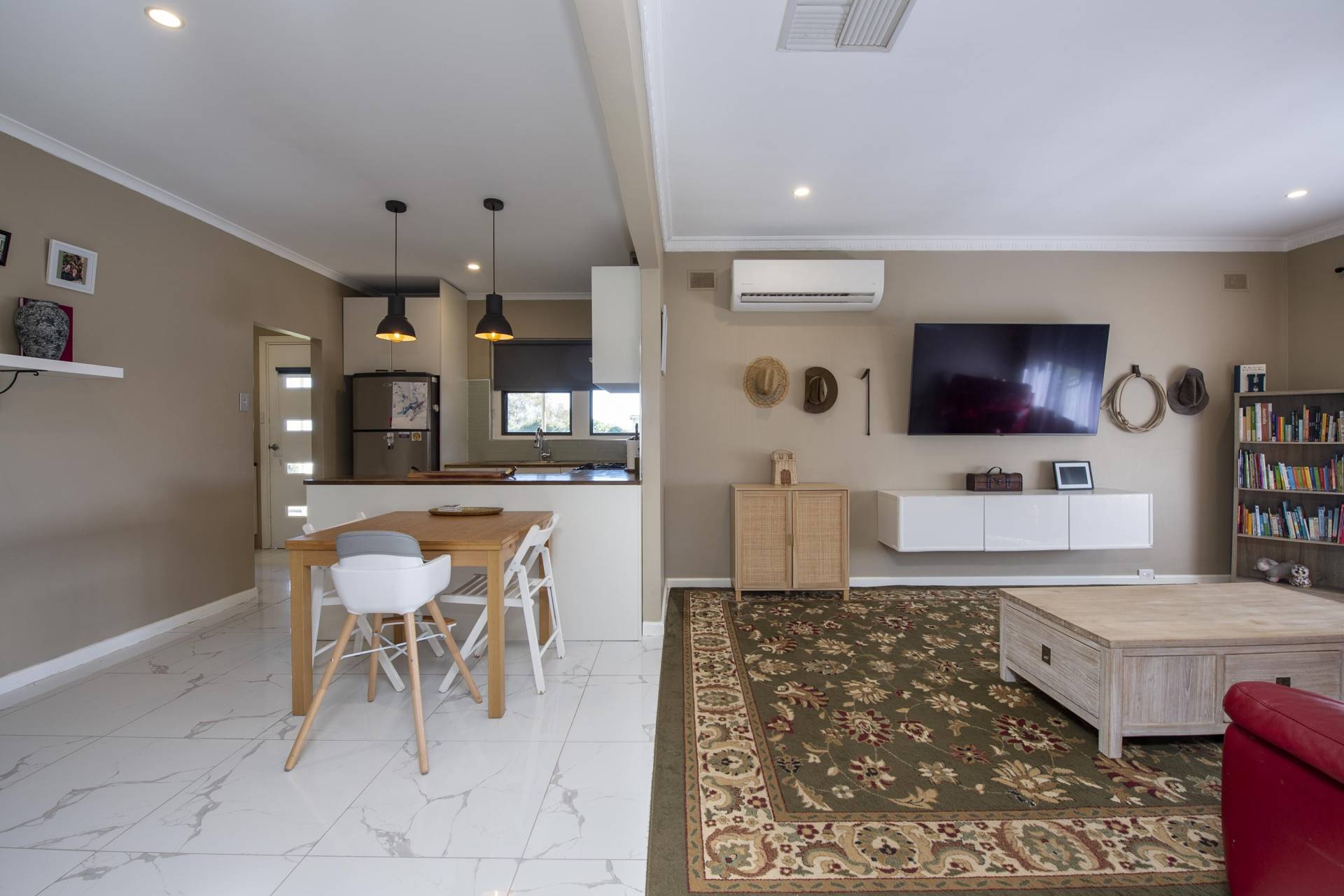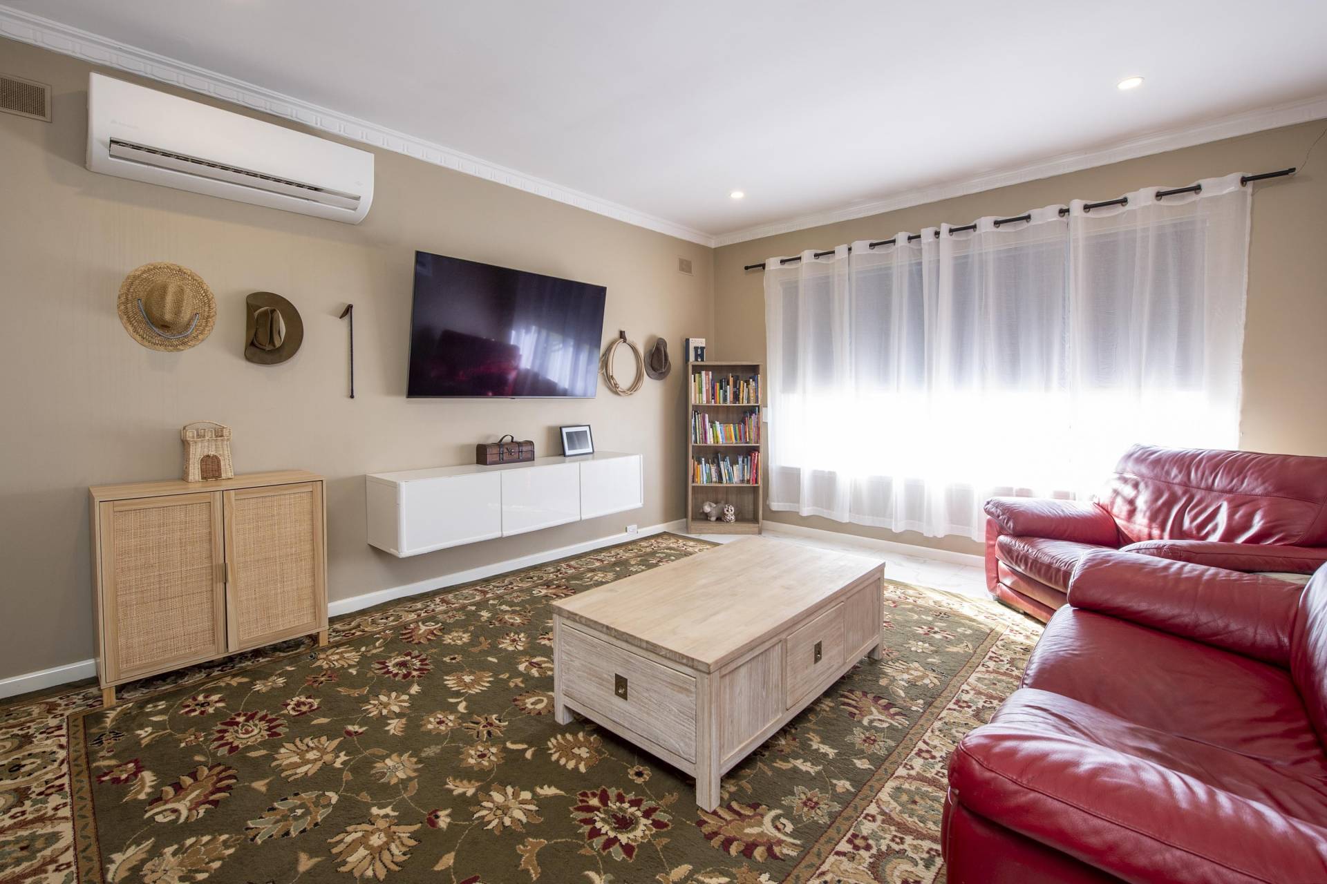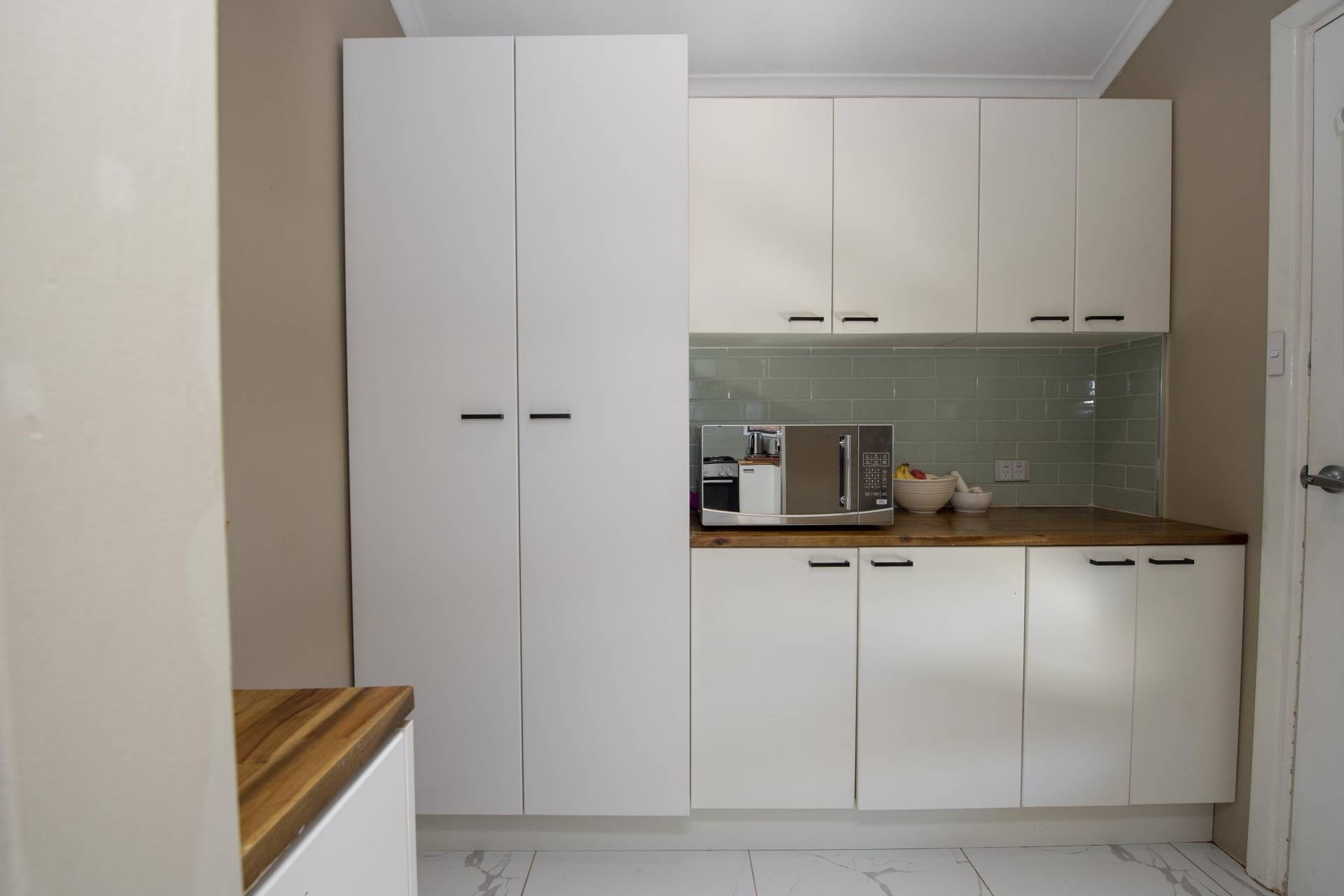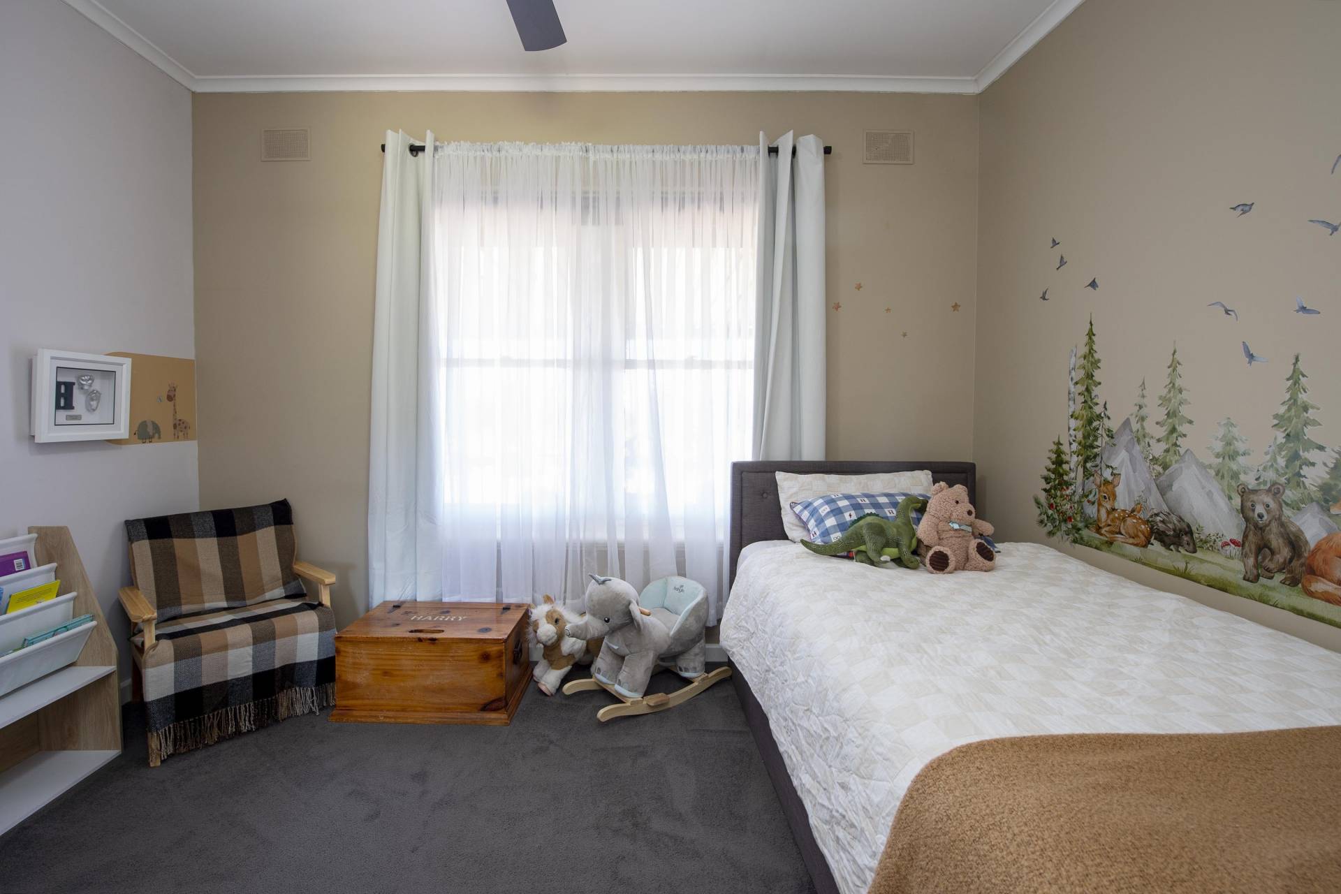 Built in 1950’s, this established home exudes light and warmth. The interior features an open plan layout that seamlessly flows from the living area to the kitchen and dining space. The modern kitchen has been tastefully updated with crisp white cabinetry with timber benchtops, subway splashback tiles, stainless steel stove with gas cooktop, range hood, sink and a handy butler's pantry with plenty of storage include.