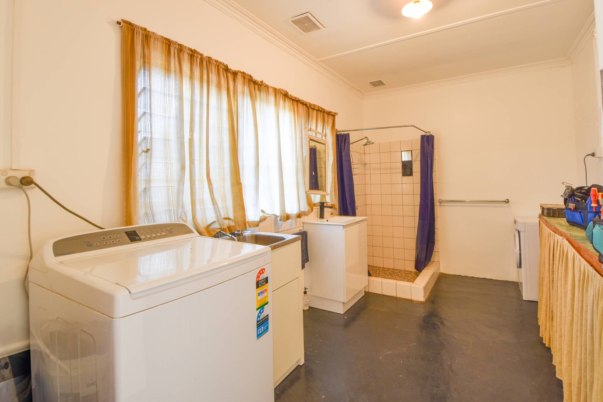 - Laundry has concrete floor, stainless steel wash trough and 2nd shower