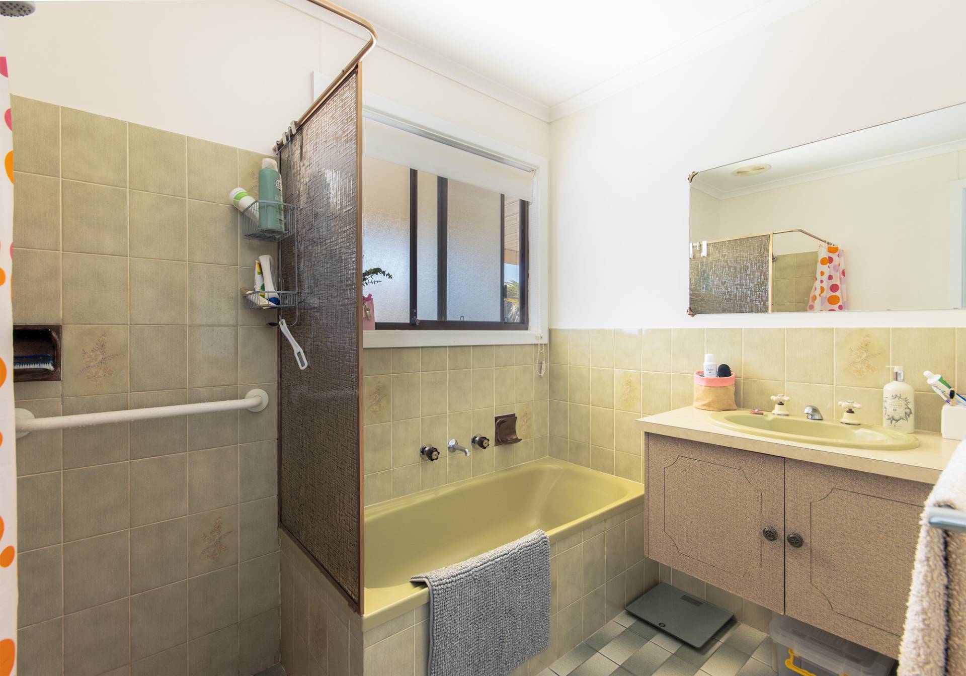**The bathroom is well-equipped with a shower, bath, and vanity, providing all the essentials for your daily routine.