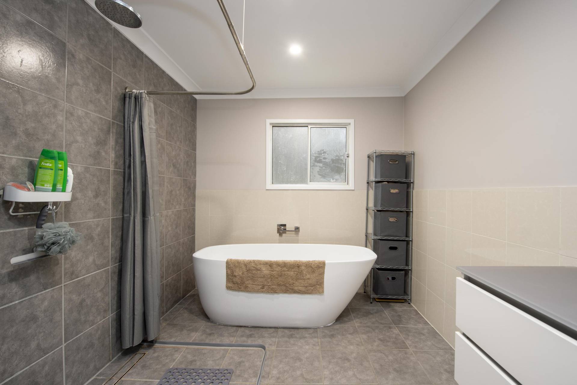 • Beautifully renovated bathroom with floor-to-ceiling tiles, stand-alone bath, and separate toilet